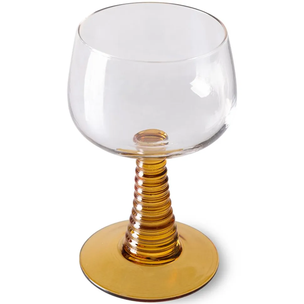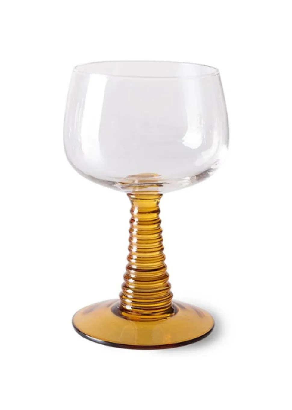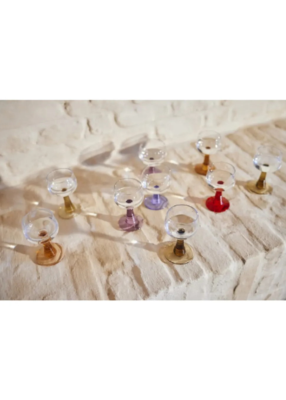 Schöne verschiedenfarbige Weingläser mit einem schönen Design im Boden, das das Weinglas zu etwas Besonderem macht. Das Glas ist mundgeblasen und hat einen massiven Glasboden mit verschiedenen Farben. Bieten Sie Ihren Gästen ein Glas Wein in diesem Glas an und der Tisch sieht mit einem einzigartigen Weinglas schöner aus als mit einem herkömmlichen Weinglas. Das Weinglas ist sowohl spülmaschinenfest als auch lebensmittelecht.