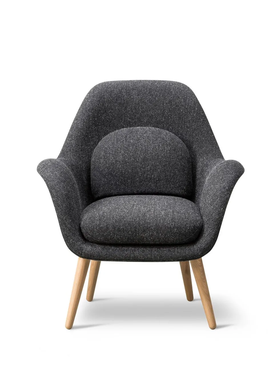 Die Kollektion zeichnet sich besonders durch ihre weiche Formensprache aus. Bei ‚Swoon‘ verschmelzen Arm- und Rückenlehne zu einer Einheit und werden durch voluminöse Kissen ergänzt, die für ein gutes Sitzerlebnis sorgen. Einzigartig an der Serie ist die Kombination von Konversationsstuhl und Sessel, die in einem Möbelstück vereint sind. Die Proportionen des Hybrids sind bei diesem Modell auf ein Minimum reduziert, was dem Stuhl ein dezenteres Aussehen verleiht, aber dennoch den Körper stützt. Schließlich wird der Stuhl mit einem Holzrahmen kombiniert, der dem Stuhl ein informelles Aussehen verleiht, das die Sitzfläche des Stuhls perfekt ergänzt.