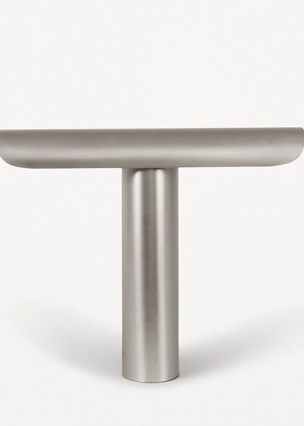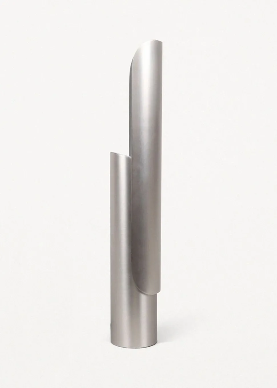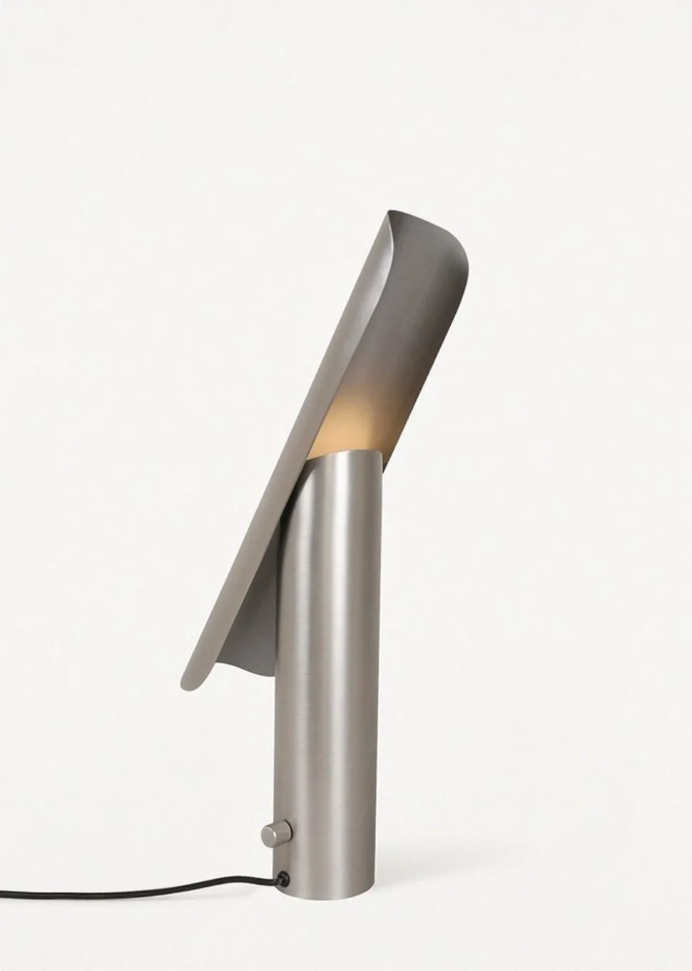 T-Lamp ist eine Neuinterpretation der klassischen architektonischen Lampe und wird zu einer geometrischen Skulptur vereinfacht. Trotz des einfachen Designs hat die Leuchte ein stark zentriertes Licht, bei dem der Schirm gekippt werden kann, um das Licht zu steuern.