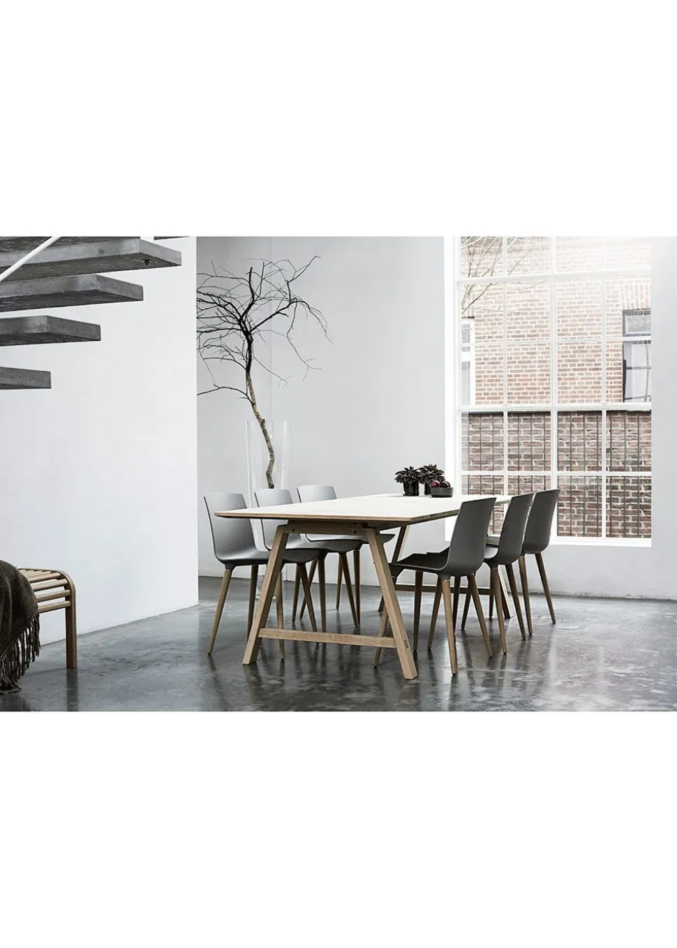 Die Tischplatte ist aus strapazierfähigem Laminat oder feinem Linoleum gefertigt. Der Rahmen ist aus Massivholz mit sichtbaren Stiften. Der Tisch ist mit einer festen Platte oder als Verlängerungstisch mit Verlängerung auf bis zu 4 Platten erhältlich. Der T1 Esstisch ist in seifenbehandelter Eiche, natur geölter Eiche, weiß geölter Eiche, schwarz lackierter Eiche und natur geöltem Nussbaum erhältlich. Bitte kontaktieren Sie uns für weitere Informationen.