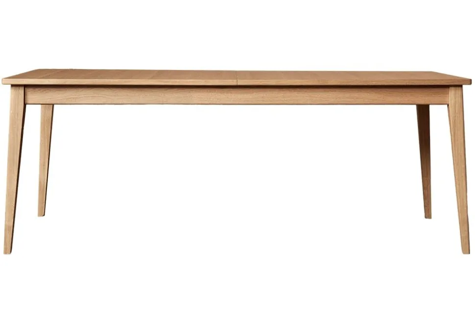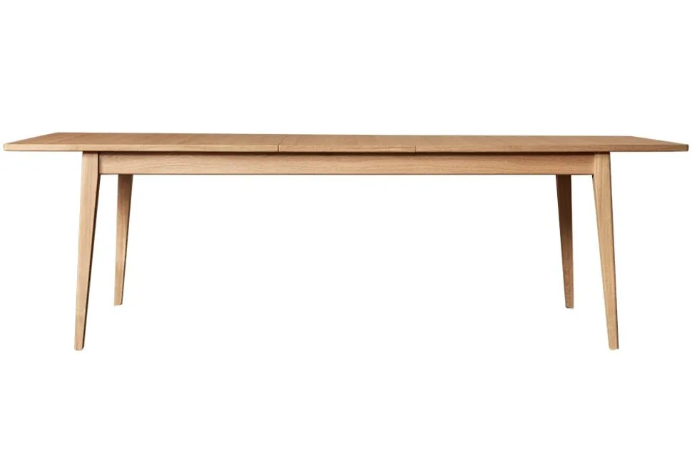 Der von byKATO entworfene Tisch T10 ist durch seinen Synchronauszug mit zwei Verlängerungsplatten äußerst funktional. So lässt sich auf einfache Weise zusätzlicher Platz am Tisch schaffen. Die Verlängerungsplatten werden im Inneren des Tisches verstaut. Die Tischplatte ist aus Eichenfurnier, die Beine aus massiver Eiche gefertigt. Beide Teile sind mit weiß pigmentiertem Mattlack behandelt, der wenig Pflege benötigt.