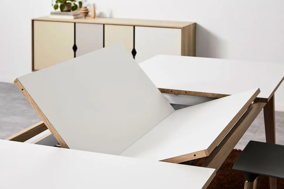 Der T3 Esstisch ist mit Fokus auf die funktionellen und alltagstauglichen schnellen Lösungen entstanden und daraus ist dieser elegante Tisch entstanden, der mit der praktischen Synchronabsaugung und der integrierten Zusatzplatte allen Anforderungen gerecht wird. Die integrierte Tischplatte ermöglicht nicht nur ein schnelles und einfaches Ausfahren des Tisches, sondern auch ein diskretes Verstauen der Tischplatte bei Nichtgebrauch.