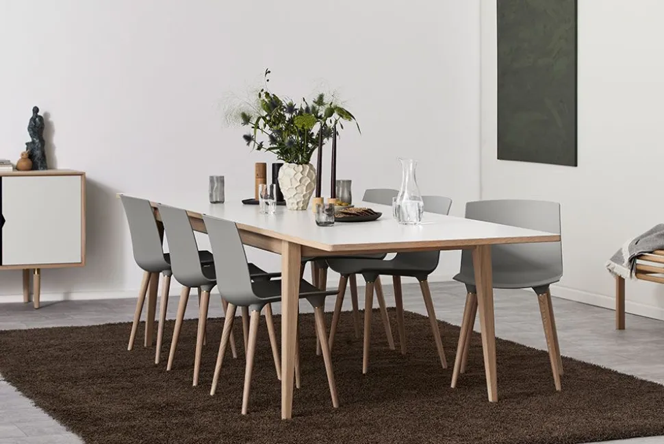 Der T3-Esstisch ist in Eiche geseift, Eiche natur geölt, Eiche weiß lackiert und Eiche schwarz gebeizt sowie in einer großen Auswahl an Laminatfarben erhältlich. Die Preise basieren auf der Seifenbehandlung. Bitte kontaktieren Sie uns für weitere Informationen.