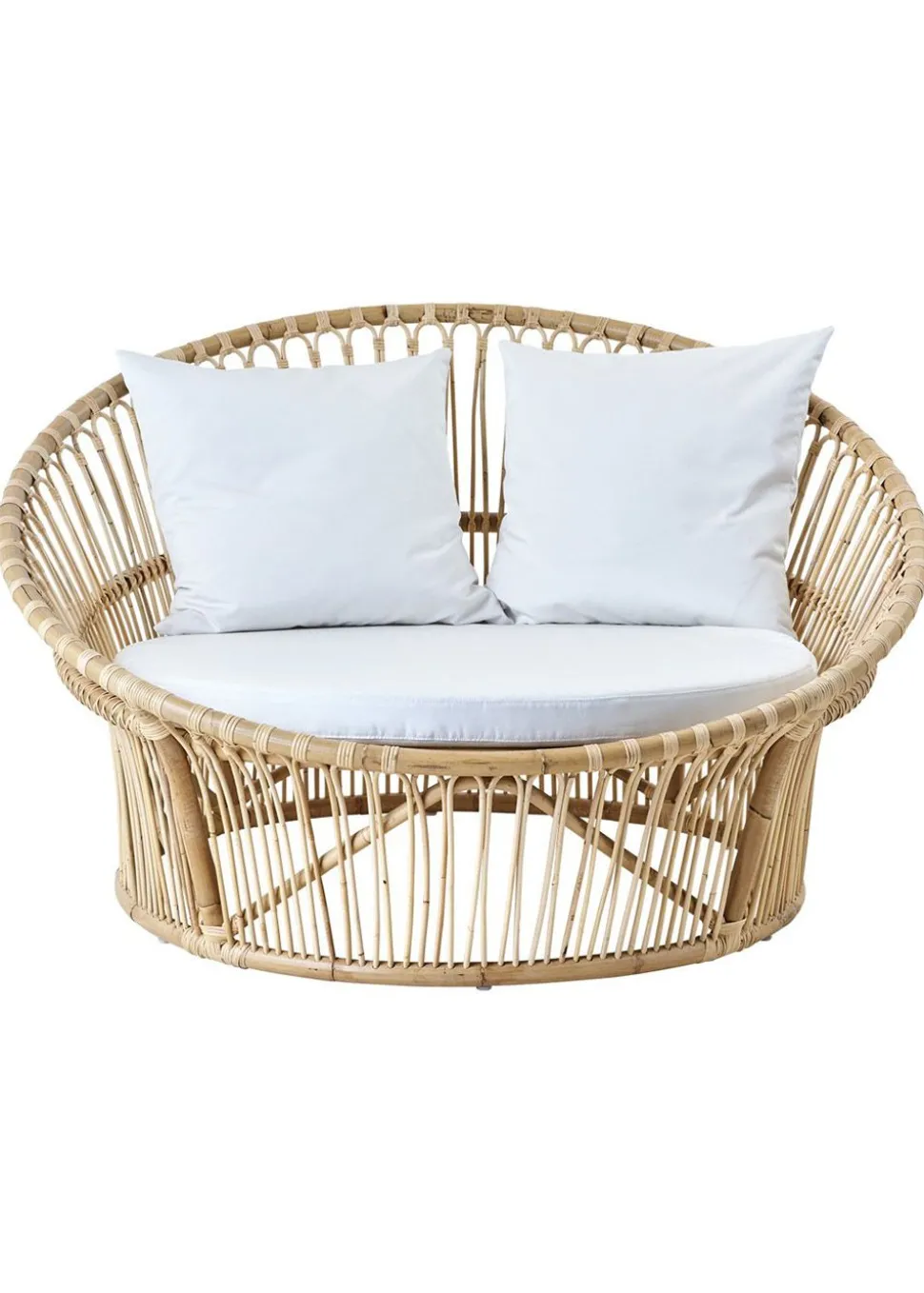 Das Liebesnest wird von Design entworfen. Der Loungesessel ist aus indonesischem, verantwortlichem Rattan hergestellt, das ein langlebiges Material ist.