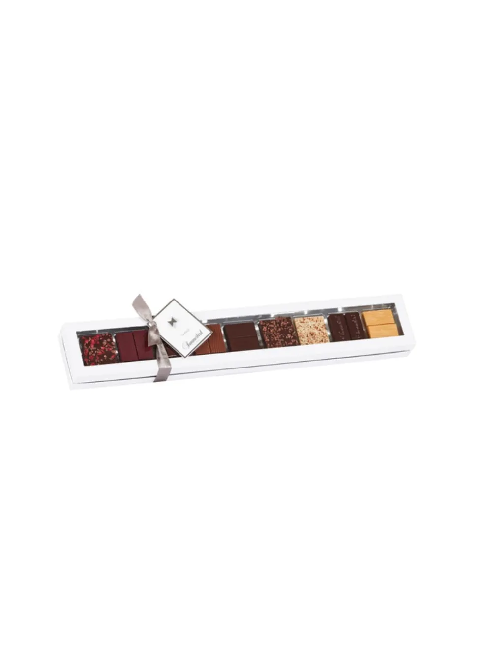 Die Tapas-Geschenkbox von ist ein raffinierter Genuss für alle, die die feinen Dinge des Lebens zu schätzen wissen. Von Meister-Chocolatiers hergestellt, bietet diese exquisite Geschenkbox eine Symphonie zarter, handgefüllter Pralinen, jede einzelne ein luxuriöses Erlebnis für die Sinne. Von der reichhaltigen Praliné-Note bis hin zur spritzigen Himbeere, dem erfrischenden Hauch von Minze und der exotischen Passionsfrucht – jeder Bissen offenbart eine Welt sorgfältig ausgewogener Aromen. Diese aus den besten Zutaten hergestellten Pralinen eignen sich perfekt für jeden Anlass, egal ob man sie gemeinsam oder allein genießt.