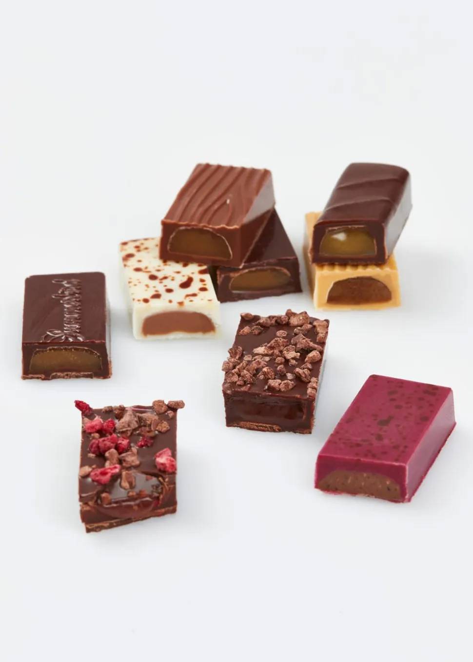 Kombinieren Sie diese eleganten Pralinen mit einem kräftigen Espresso oder einem Glas Jahrgangschampagner, um ihre komplexen Geschmacksschichten zu unterstreichen. Die Tapas-Geschenkbox kann auch als raffiniertes Dessert zusammen mit frischem Obst oder zartem Gebäck serviert werden. Für ein wahres Genusserlebnis können Sie die Pralinen in eine dekadente Wurstplatte integrieren, die einen süßen Kontrast zu handwerklich hergestellten Käsesorten und Wurstwaren bildet. Einfach auspacken und genießen oder kunstvoll präsentieren, um jeder Zusammenkunft einen Hauch von Eleganz zu verleihen.