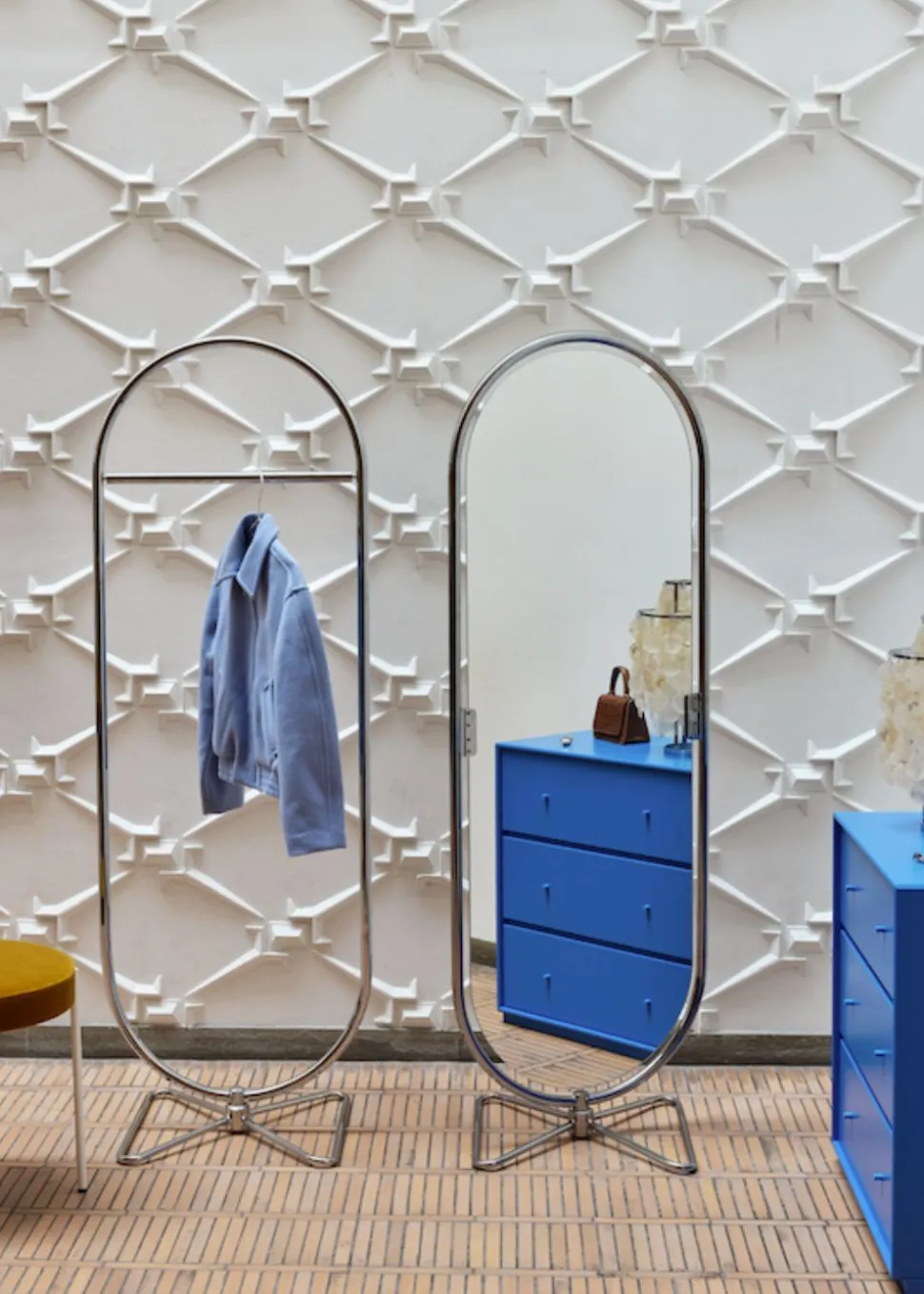 Das System 1-2-3 Rack wurde 1973 von entworfen. Das Gestell ist aus verchromtem Stahl gefertigt.
