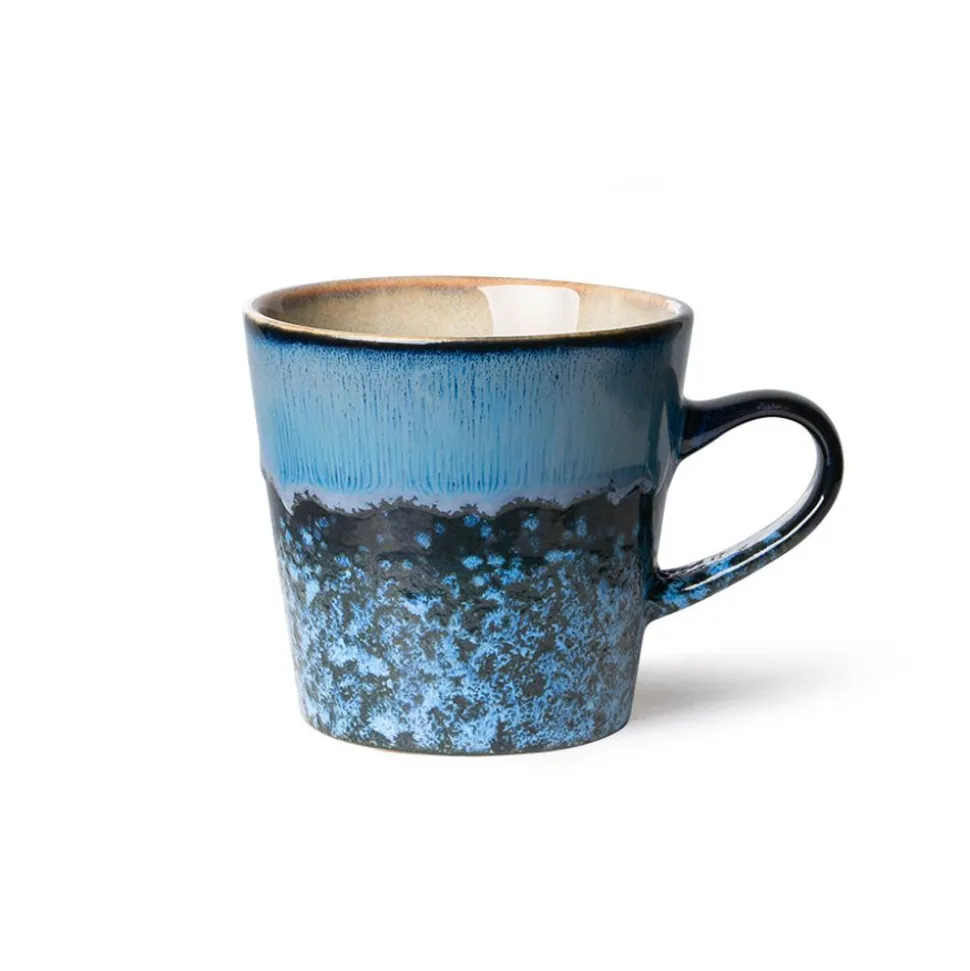Kräftige Farben, nostalgische Muster und einzigartige Materialien. Die 70er-Jahre-Keramikkollektion von HK Living ist eine Mischung aus modernen Pastellfarben und Retro-Design, gesammelt in einem einzigartigen Keramikbecher. Die Serie besteht aus handgefertigtem Steingut, das Farb- und Mustervariationen erzeugt, so dass jeder Becher ein Unikat ist.