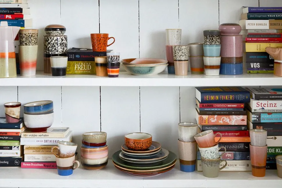 Kräftige Farben, nostalgische Muster und einzigartige Materialien. Die 70er-Jahre-Keramikkollektion von HK Living ist eine Mischung aus modernen Pastellfarben und Retro-Design, gesammelt in einem einzigartigen Keramikbecher. Die Serie besteht aus handgefertigtem Steingut, das Farb- und Mustervariationen erzeugt, so dass jeder Becher ein Unikat ist.