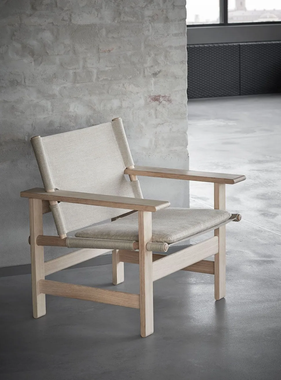 Der Canvas Chair“ ist ein perfektes Beispiel für die Designphilosophie des Designers Børge Mogensen, bei der die Möbel in all ihrer Schlichtheit ihren ikonischen Status gerade durch die informelle Designsprache und die Verwendung von Materialien höchster Qualität erlangen. Der Canvas Chair“ wurde als Gegenentwurf zu den trendigen und auffälligen Möbeln der 60er Jahre geschaffen. Dies ist einer der Gründe, warum das bodenständige und vielseitige Design noch immer ein Klassiker in vielen Wohnungen auf der ganzen Welt ist.