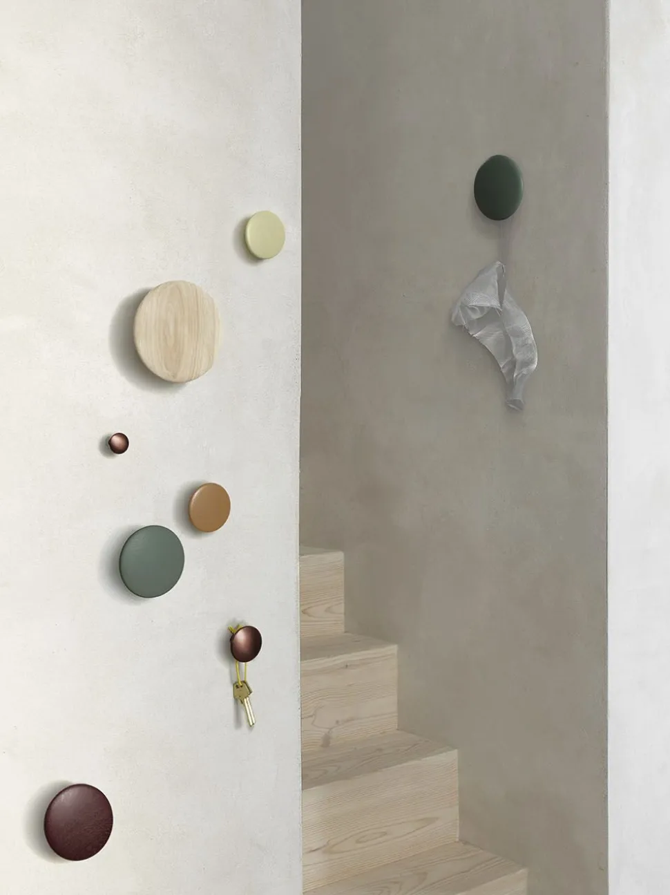 Die Dots-Haken haben ein sehr zeitloses und einfaches Design. Sie entscheiden, wie Ihre Garderobenhaken angeordnet werden sollen, damit Sie Ihre eigene, einzigartige Garderobe erhalten, die Lars Tornøe für diese Garderobenhaken entworfen hat.