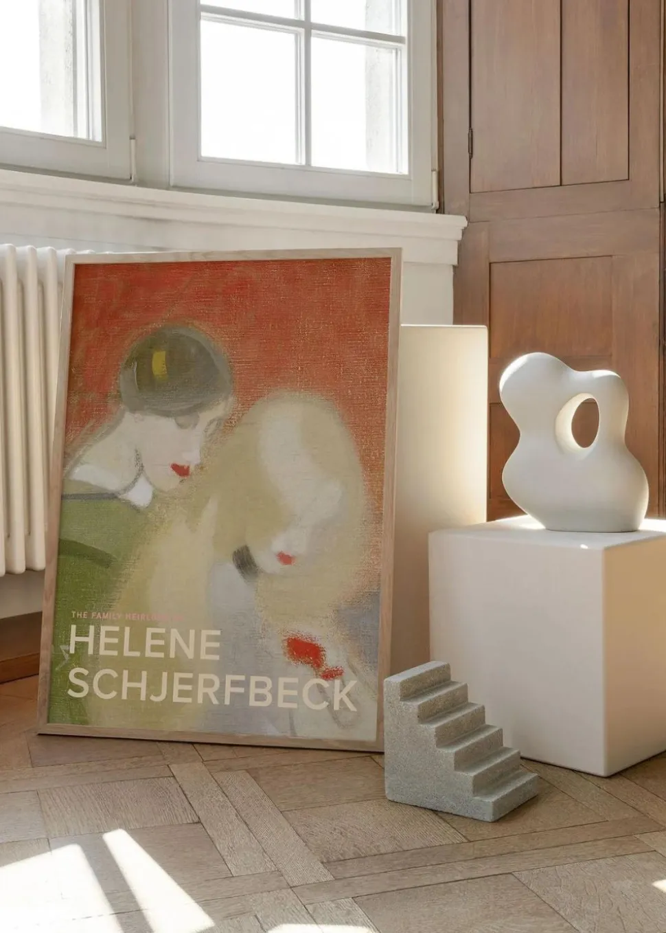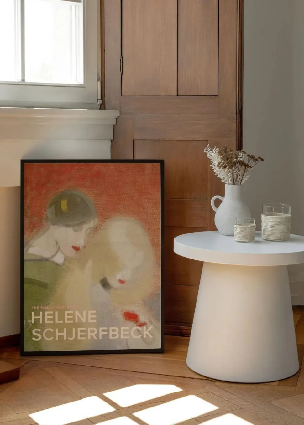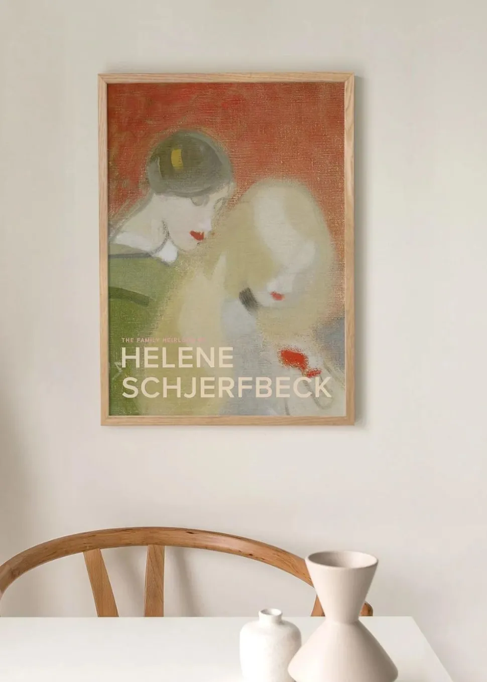 The Family Heirloom wurde von Helene Schjerfbeck entworfen. Das Plakat ist wunderschön und farbenfroh. Die schönen Farbtöne sind einzigartig kombiniert und schaffen einen raffinierten und ausdrucksstarken Ausdruck. Das Motiv sind zwei Frauen, die mit einem traurigen Gesicht auf den Boden schauen.