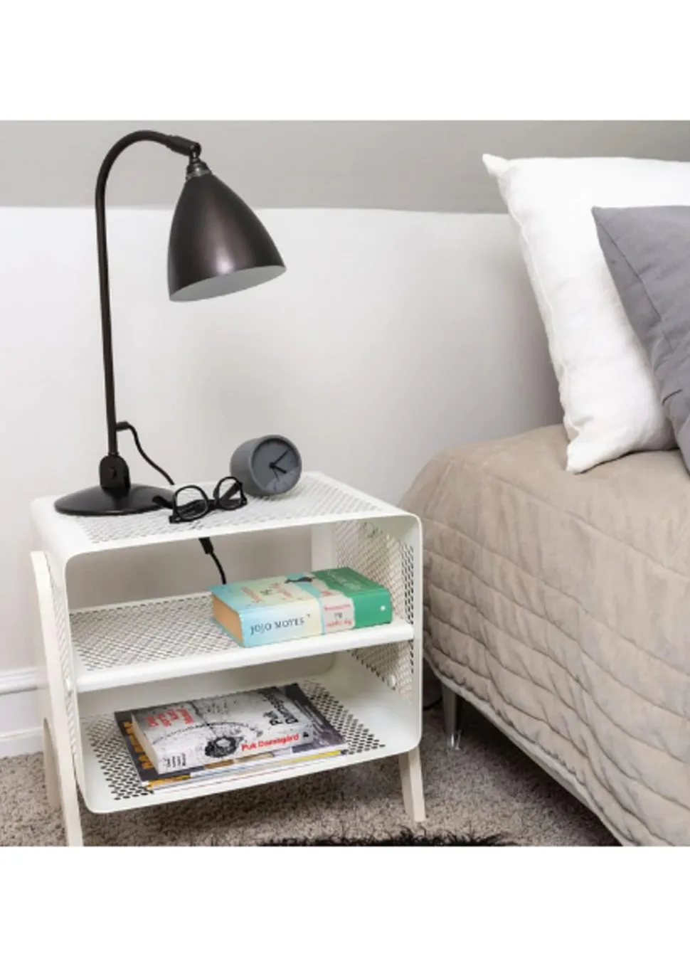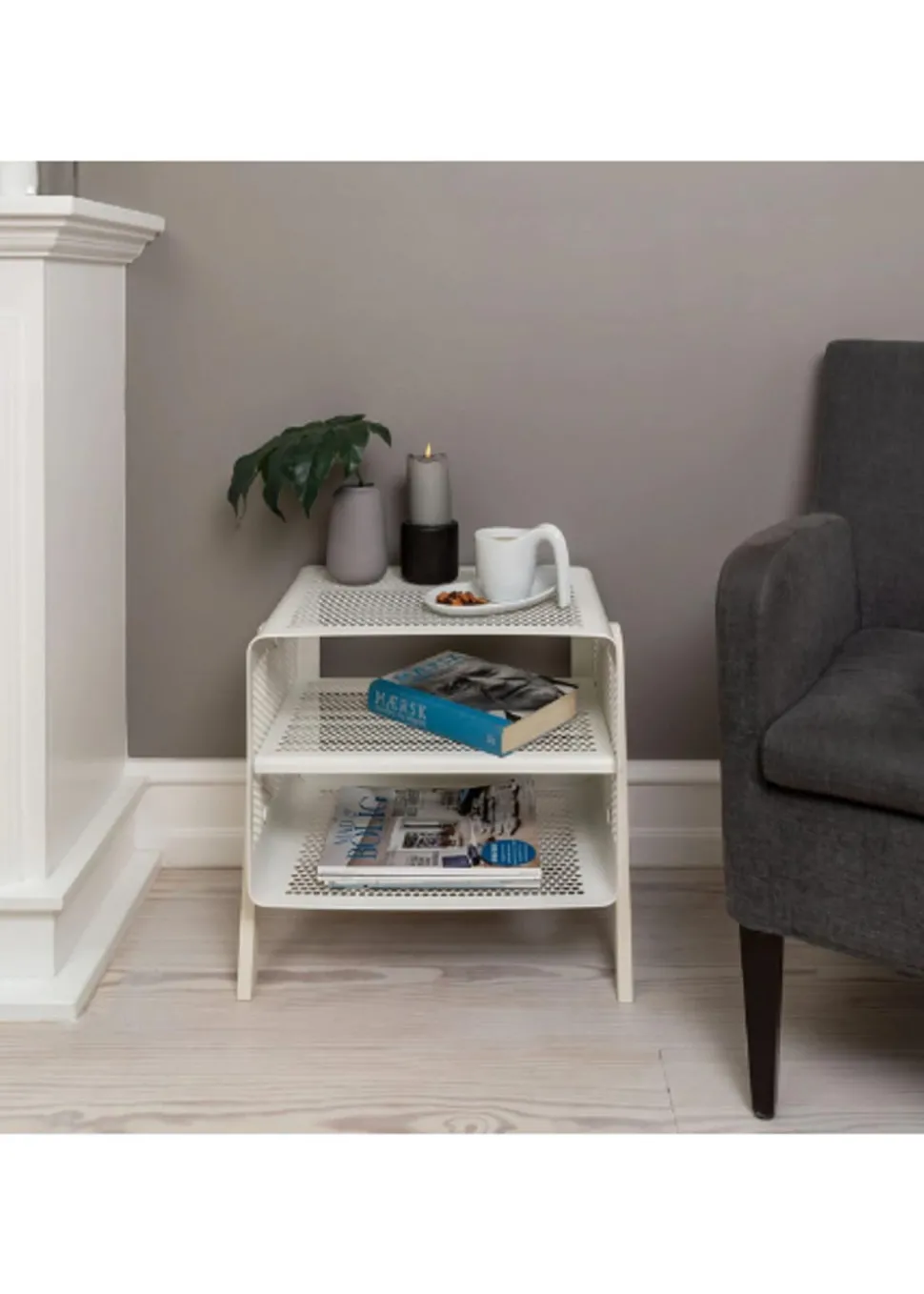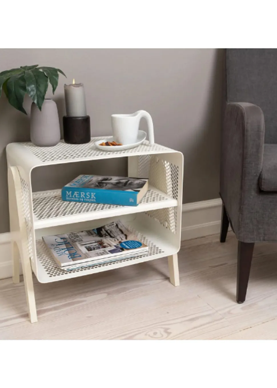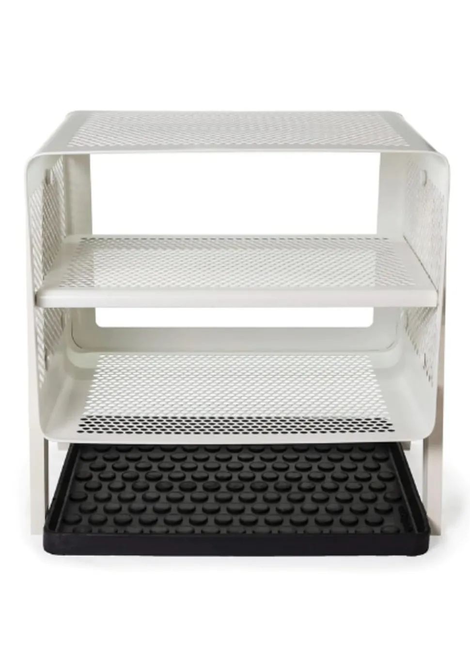 Schönes und praktisches Bücherregal. Leicht zu bewegen und perfekt für die Lagerung. Sie können die Schuhe im unteren, mittleren und oberen Regal unterbringen. Sie können aber auch Fahrradhelme, Taschen usw. oben aufbewahren. Sie können die einzigartige Matte von hinzufügen, die perfekt darunter passt, damit die Schuhe nicht auf den sauberen Boden tropfen, da die Matte den Schmutz aufnimmt. Sie können das Bücherregal auch als Nachttisch verwenden, wo Sie ein Buch, ein Handy usw. aufbewahren können. Die Wandregale können auf zwei verschiedene Arten montiert werden, nämlich entweder an der Wand mit den Regalen seitlich oder vorne, was von Vorteil sein kann, wenn man keinen so breiten Flur hat, dafür ist es perfekt.
