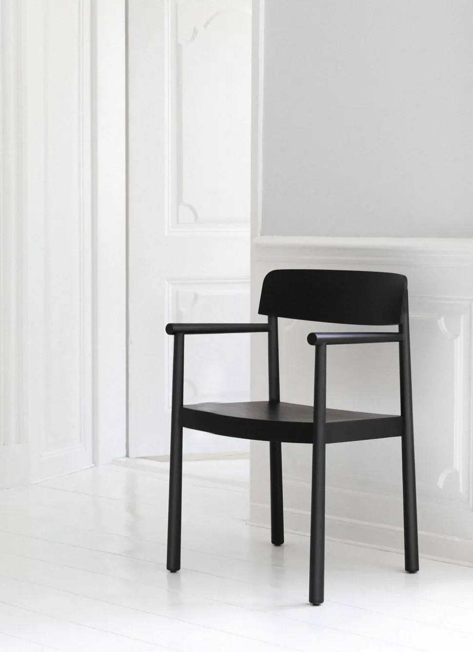 Timb Chair, entworfen von Simon Legald für , ist ein moderner Stuhl, der ein Design mit Referenzen an klassische bekannte Designs bietet. Die Proportionen des Stuhls arbeiten mit der breiten Sitzfläche und Rückenlehne, um eine bequeme Sitzgelegenheit zu schaffen, die sowohl für das Esszimmer als auch für das Büro geeignet ist.