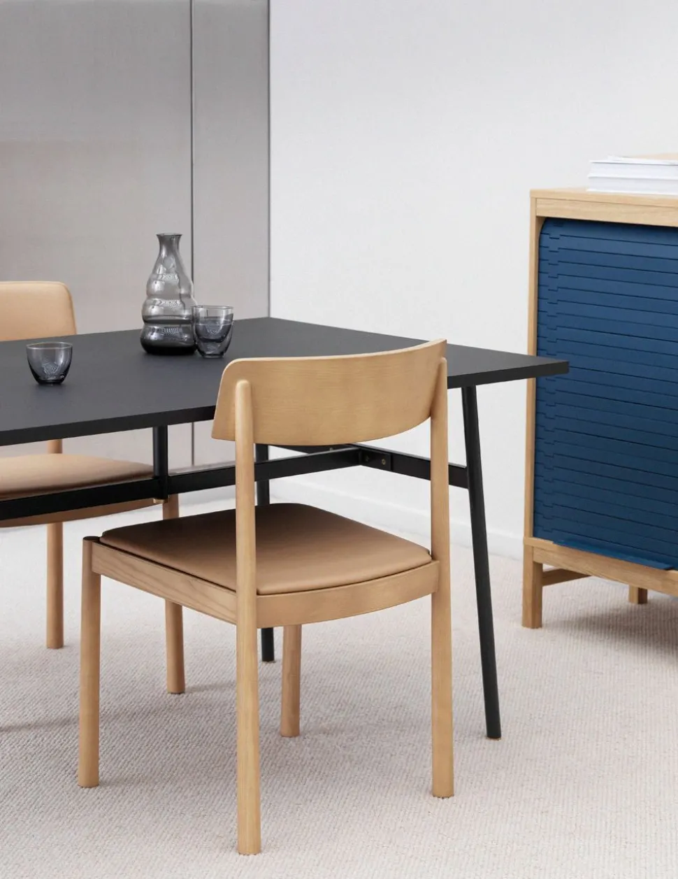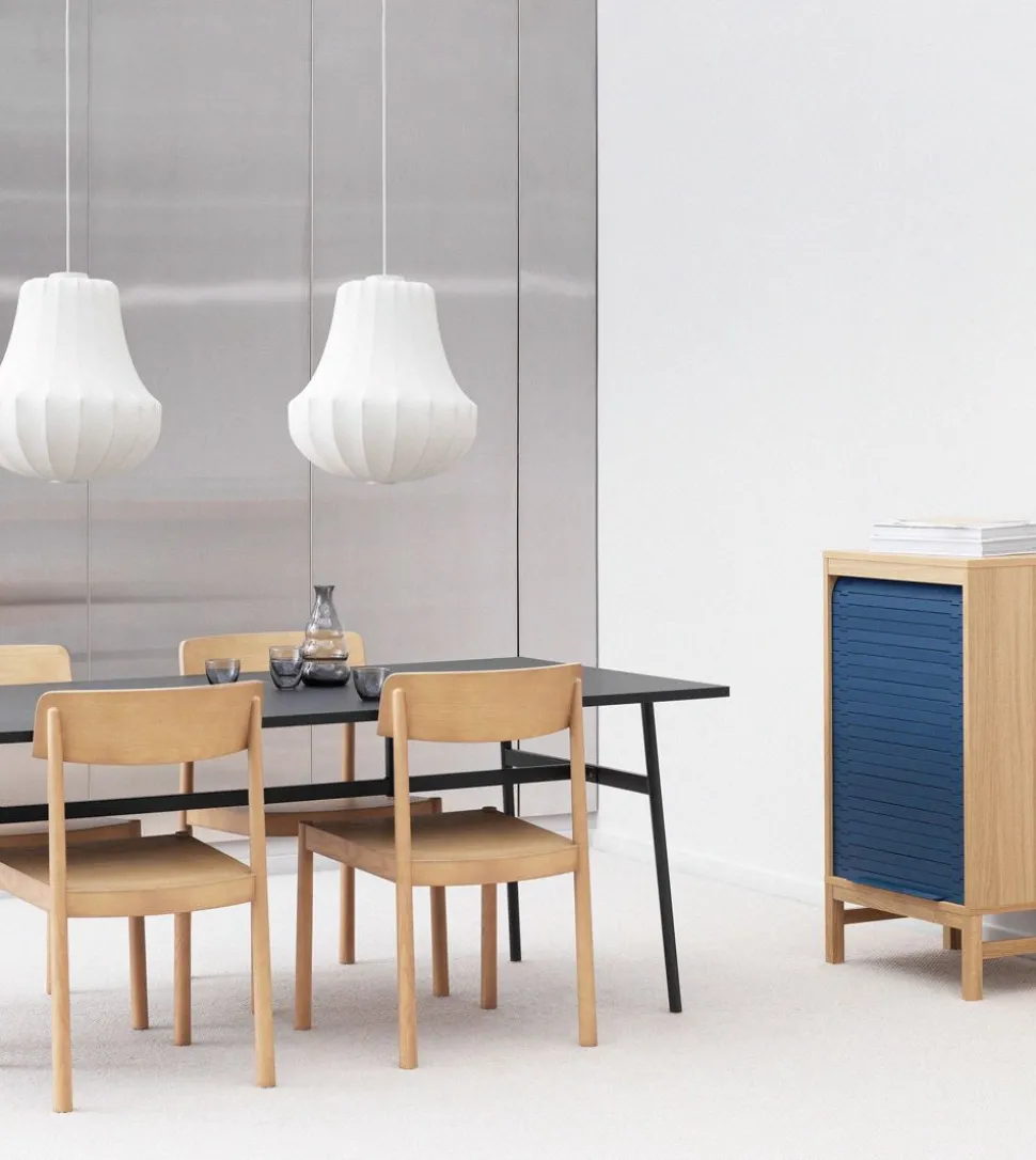 Timb Chair, entworfen von Simon Legald für , ist ein moderner Stuhl, der ein Design mit Referenzen an klassische bekannte Designs bietet. Die Proportionen des Stuhls arbeiten mit der breiten Sitzfläche und Rückenlehne, um eine bequeme Sitzgelegenheit zu schaffen, die sowohl für das Esszimmer als auch für das Büro geeignet ist.