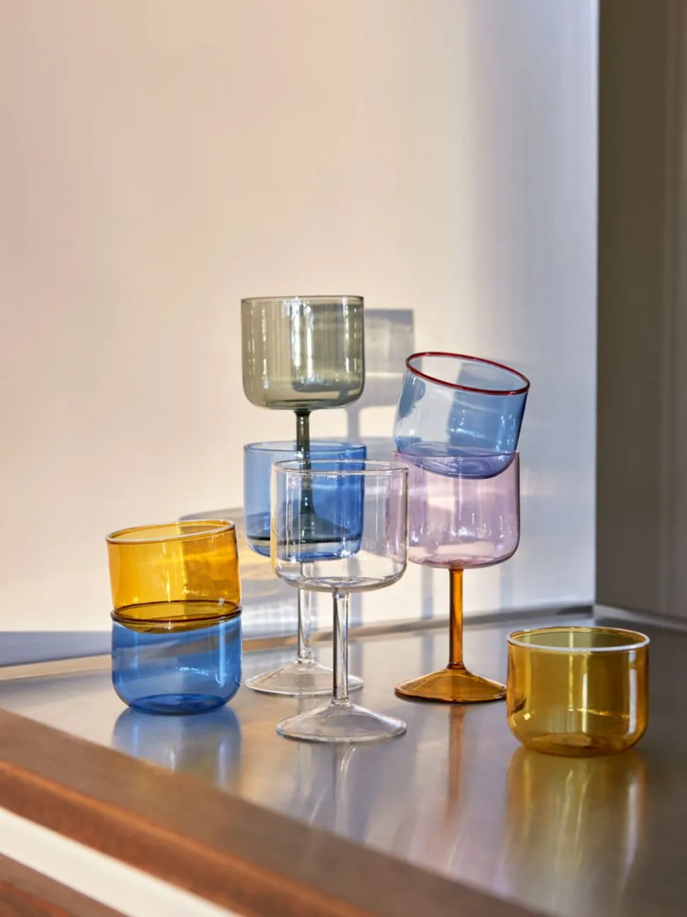 Das originelle und farbenfrohe Glas von mit einem schlichten Design, das in jedes Haus passt. Perfekt mit den Tint Trinkgläsern von für eine farbenfrohe Tischdekoration.