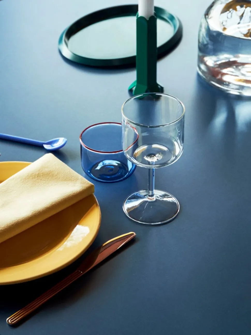 Das originelle und farbenfrohe Glas von mit einem schlichten Design, das in jedes Haus passt. Perfekt mit den Tint Trinkgläsern von für eine farbenfrohe Tischdekoration.