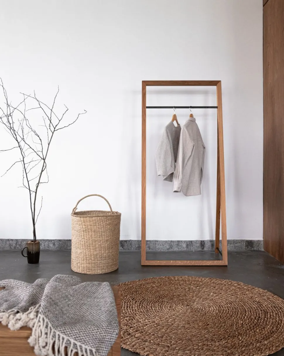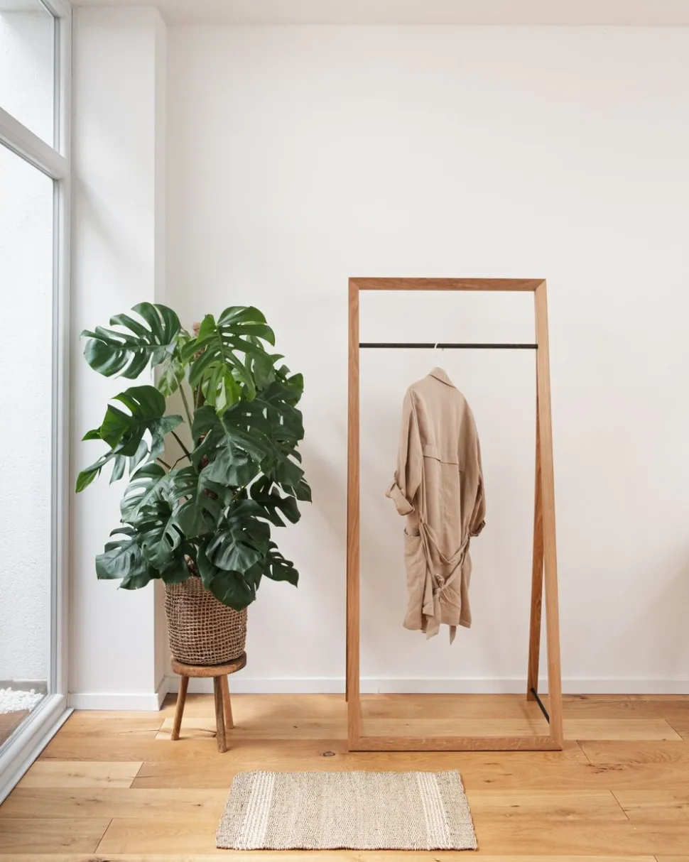 Mit einer offensichtlichen Inspiration aus der Mode, der Innenarchitektur und der Fotografie wurde Framed Hanger entwickelt, um seinem Namen gerecht zu werden, indem es Ihre Lieblingsoutfits einrahmt und sie zu einem Teil Ihrer Wohnungseinrichtung macht. Eine praktische und dekorative Art, Kleidung für morgen aufzubewahren oder einfach außergewöhnliche Kleidungsstücke zu präsentieren. Es versteht sich von selbst, dass der Kleiderständer ein elegantes Gleichgewicht zwischen funktionaler Aufbewahrung, nordischer Ästhetik und verantwortlichen Materialien herstellt.
