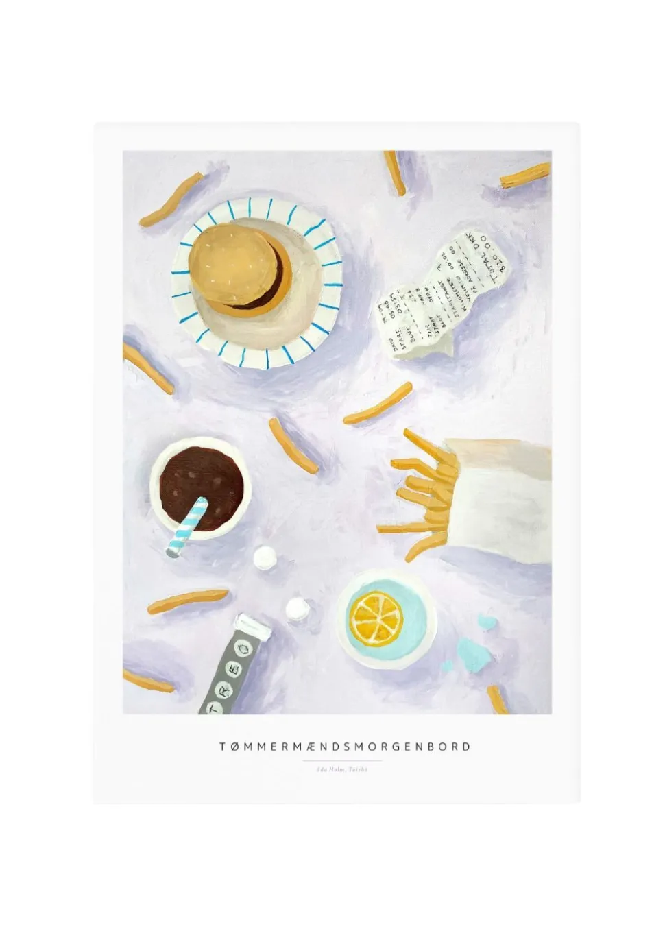 Der Samstagabend war toll, aber der Sonntagmorgen nicht. Sie wachen mit einem Kater auf und haben einen Heißhunger auf Pommes frites wie nie zuvor. Das Poster „Hangover Breakfast“ von fängt das unvollkommene Bild ein, wie ein Sonntagmorgen nach einem feuchtfröhlichen Samstag aussieht. Es ist ein lustiges und schönes Poster, auf dem man die weichen Pinselstriche sehen und die Stimmung spüren kann.