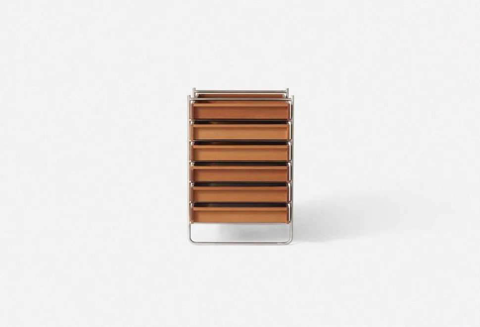Ein Teil der Philosophie der Designerin Line Depping ist es, sich mit Dingen zu umgeben, die einen Mehrwert für den Alltag bieten und oft benutzt werden. Diese Philosophie spiegelt sich deutlich in ihren Tool Boxes wider, die die Kombination von Funktionalität und Design auf eine ganz neue Ebene heben. Gefertigt mit außergewöhnlichen Tischlerarbeiten und Materialien von exquisiter Qualität, erhält dieses einfache Möbelstück ein extravagantes Design, das perfekt für den täglichen Gebrauch ist. Die Tool Boxes bestehen aus einem minimalistischen Edelstahlrahmen und sind entweder in Oregon-Kiefer mit klassischem Retro-Design oder in Esche mit einer abgestuften gelben Beize erhältlich, die einen modernen und verspielten Look hat. Verwenden Sie die Möbel für die Organisation von Papieren im Büro, Badezimmerzubehör oder grundlegende alltägliche Notwendigkeiten.