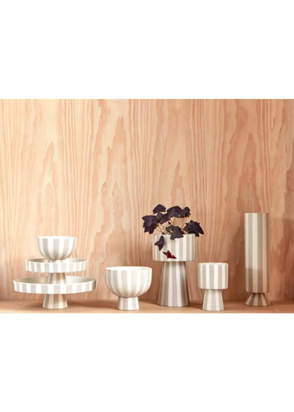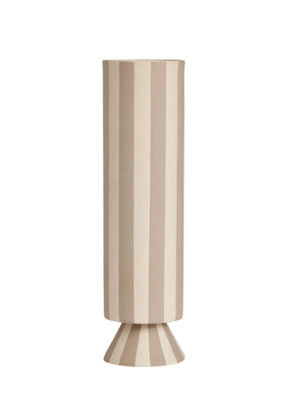 Die Toppu Vase von LIVING ist ein weiterer schöner Artikel aus der Toppu Serie. Toppu wurde erstmals in der SS17-Kollektion vorgestellt, und die charakteristischen Streifen wurden seitdem zu einer ganzen Serie einzigartiger Produkte weiterentwickelt, die von aktuellen Trends inspiriert sind und nun Toppu heißen. Das einheitliche Design ist auch in dieser Vase zu sehen, die ebenfalls aus zwei gestreiften Farben besteht. Dekorieren Sie Ihr Zuhause mit dieser einzigartigen Vase, sowohl als Bodenvase, aber auch als normale Vase auf einem Regal oder Bücherregal.