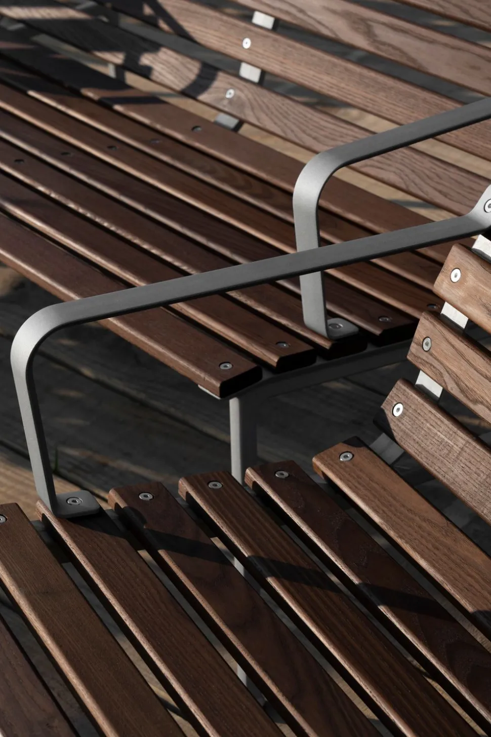 Die Traverse Dining Bench von , entworfen von Erwan Bouroullec, ist eine elegante und funktionelle Bank, die modernes Design mit natürlichen Materialien verbindet. Mit einem robusten Gestell aus Aluminiumdruckguss und einer Sitzfläche aus wärmebehandelter Esche mit Lattenrost bietet die Bank ein harmonisches Gleichgewicht zwischen Haltbarkeit und Ästhetik. Die natürliche Patinierung der Materialien im Laufe der Zeit verleiht ihr eine einzigartige Note, während das ergonomische Design für ein bequemes Sitzerlebnis sorgt. Die Traverse Dining Bench ist sowohl für den Innen- als auch für den Außenbereich geeignet und für maximale Flexibilität mit oder ohne Armlehnen erhältlich.