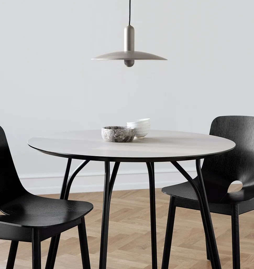 Tree Dining Table ist ein Entwurf von Elisabeth Hertzfeld. Der Name des Tisches kommt von den sich verzweigenden Tischbeinen, die den Ästen eines Baumes ähneln. Jedes Bein besteht aus zwei Stahlrohren, die zur Tischplatte hin verbunden sind und sich dort trennen, um die Tischplatte an mehreren Stellen zu stützen. Die runde Form des Tisches ist ideal für Gespräche und Zusammensein.