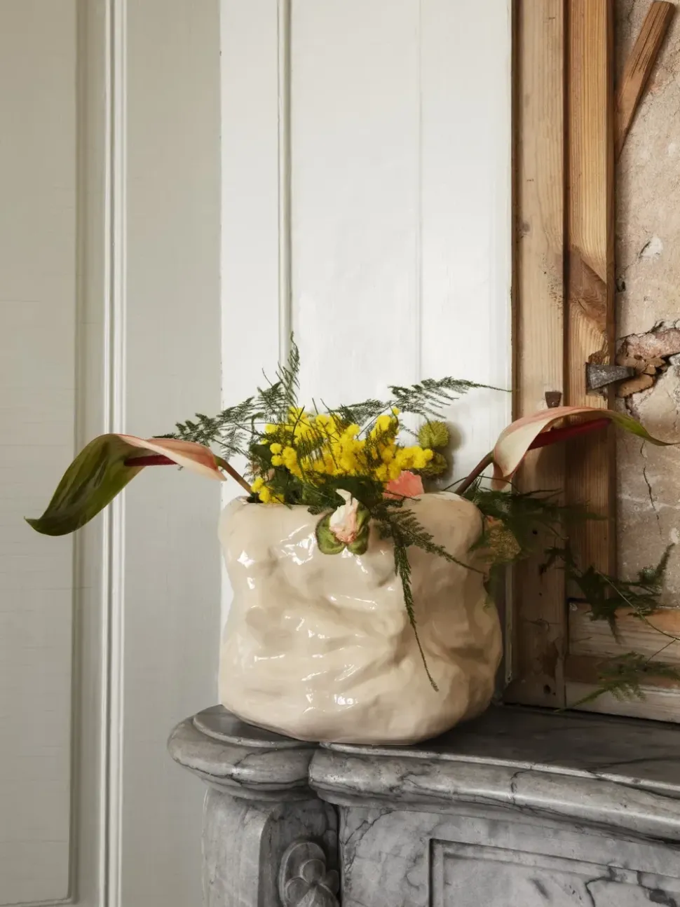 Dieses wunderschöne Tuck-Glas von wurde ursprünglich von Hand geformt und schafft die perfekte Balance zwischen Funktionalität und Kraft. Der künstlerische Ausdruck entsteht durch eine mehrschichtige Hochglanzglasur in Kombination mit einer lichtreflektierenden Oberfläche, die seinen gefurchten Charakter unterstreicht. Fügen Sie Blumen oder Zweige hinzu oder lassen Sie es allein auf einem Regal oder Tisch in Ihrem Zuhause stehen.