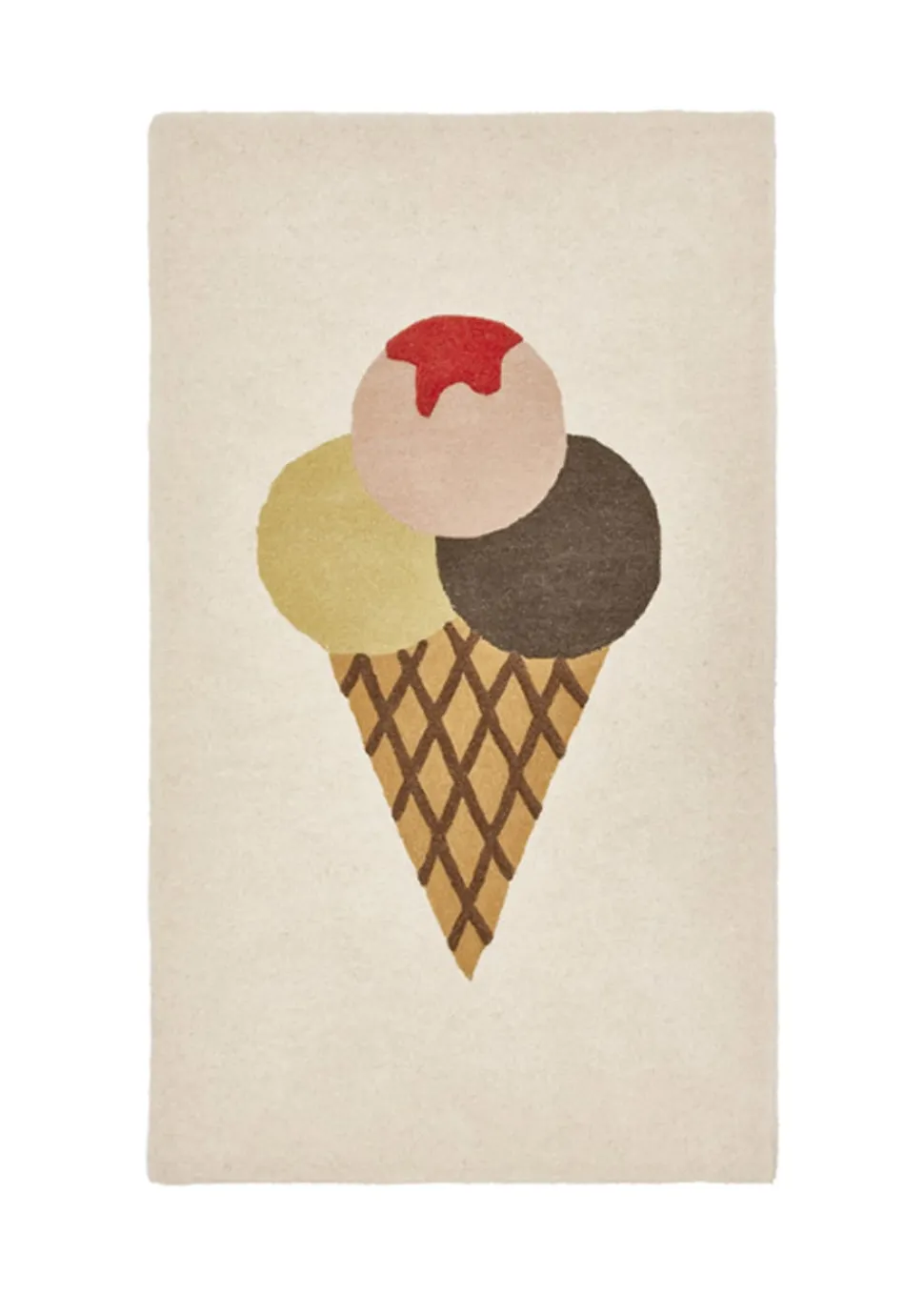 Der getuftete Miniaturteppich von MINI besteht zu 80 % aus Wolle und zu 20 % aus Baumwolle und hält so die kleinen Kinderfüße warm. Der Teppich zeigt entweder ein süßes Croissant, eine Banane oder eine Eiswaffel mit vielen feinen Details. Der Teppich kann für stundenlanges Spielen auf dem Boden oder als schöne Wanddekoration verwendet werden.