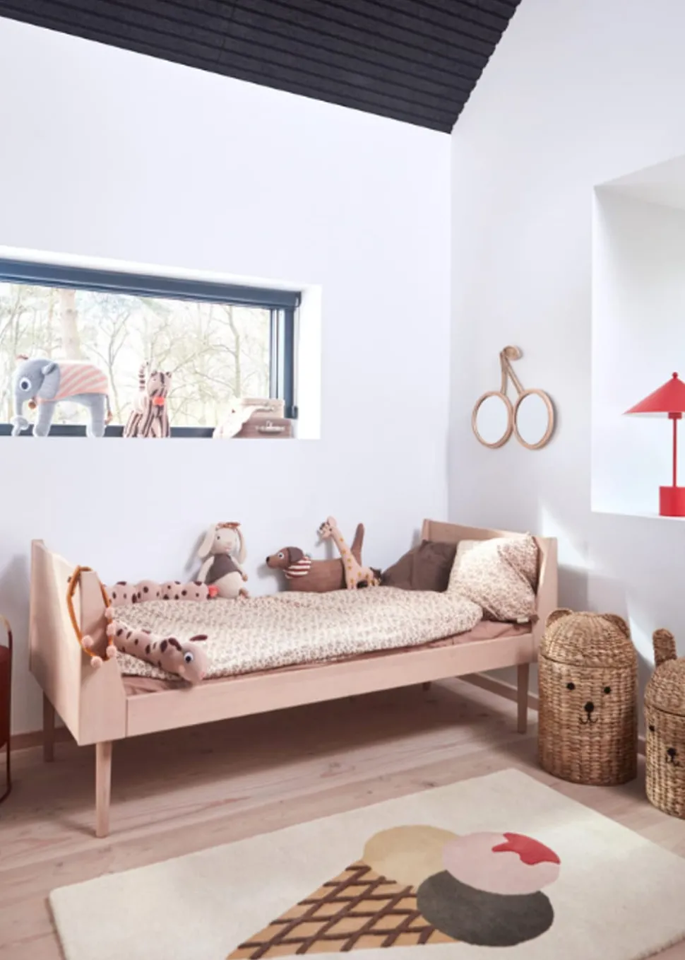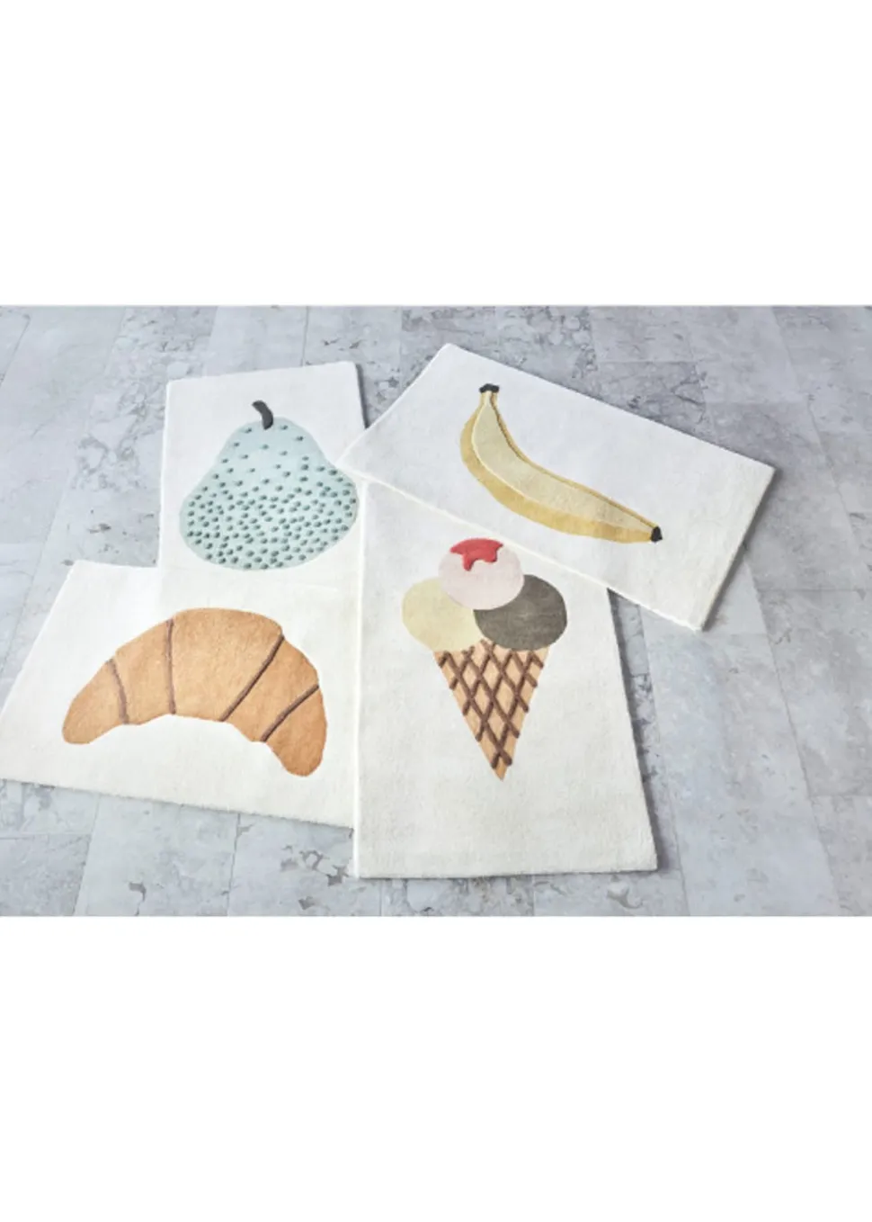 Der getuftete Miniaturteppich von MINI besteht zu 80 % aus Wolle und zu 20 % aus Baumwolle und hält so die kleinen Kinderfüße warm. Der Teppich zeigt entweder ein süßes Croissant, eine Banane oder eine Eiswaffel mit vielen feinen Details. Der Teppich kann für stundenlanges Spielen auf dem Boden oder als schöne Wanddekoration verwendet werden.