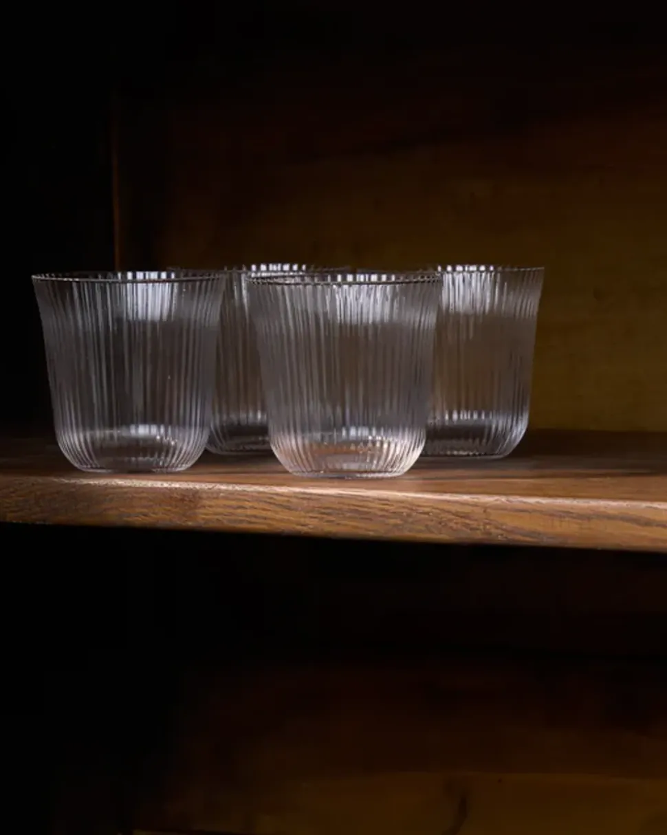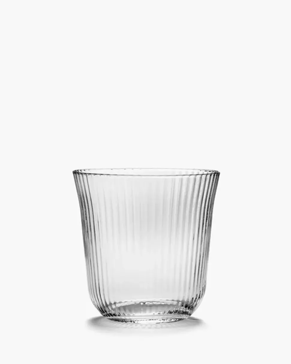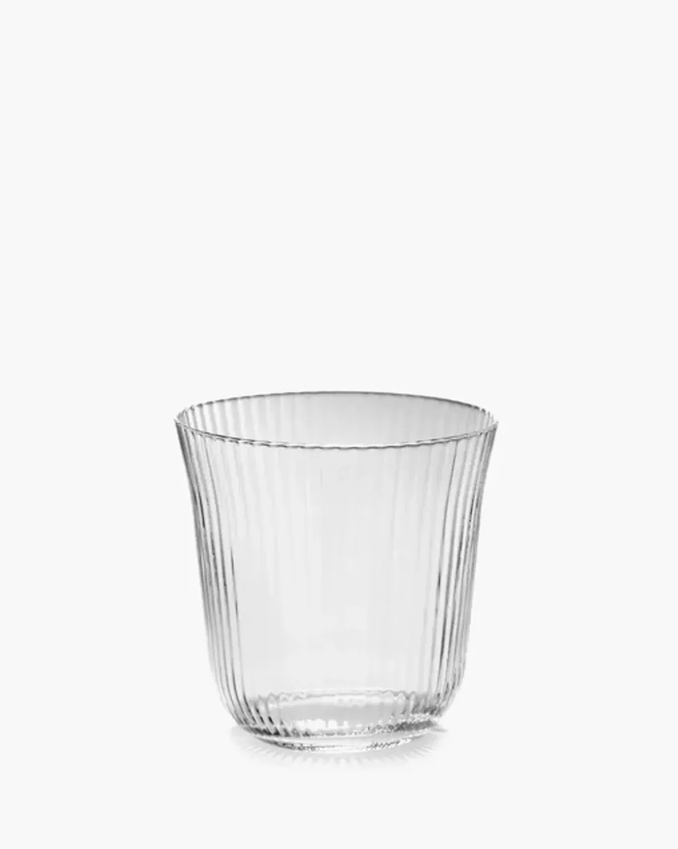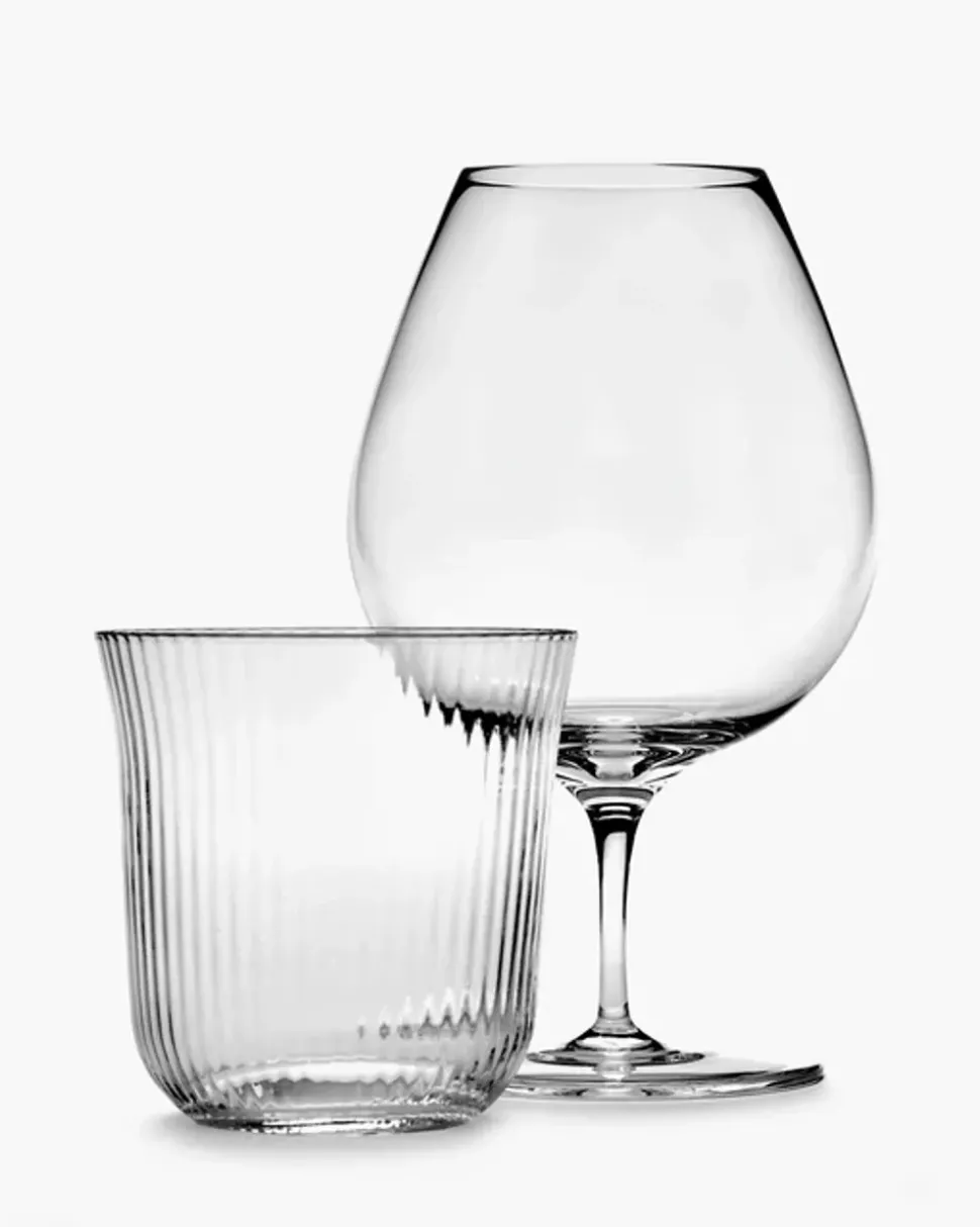 Das von Sergio Herman entworfene Becherglas Inku von bringt den japanischen Minimalismus mit subtiler Eleganz und Liebe zum Detail in Ihr Zuhause. Das Glas aus langlebigem Kaliumglas hat eine glatte, gewellte Oberfläche, die ihm eine raffinierte und künstlerische Dimension verleiht. Jedes Glas wird teilweise von Hand gefertigt, was jedem Glas seinen eigenen, einzigartigen Ausdruck verleiht und es zu einer einzigartigen Ergänzung für jeden gedeckten Tisch macht.