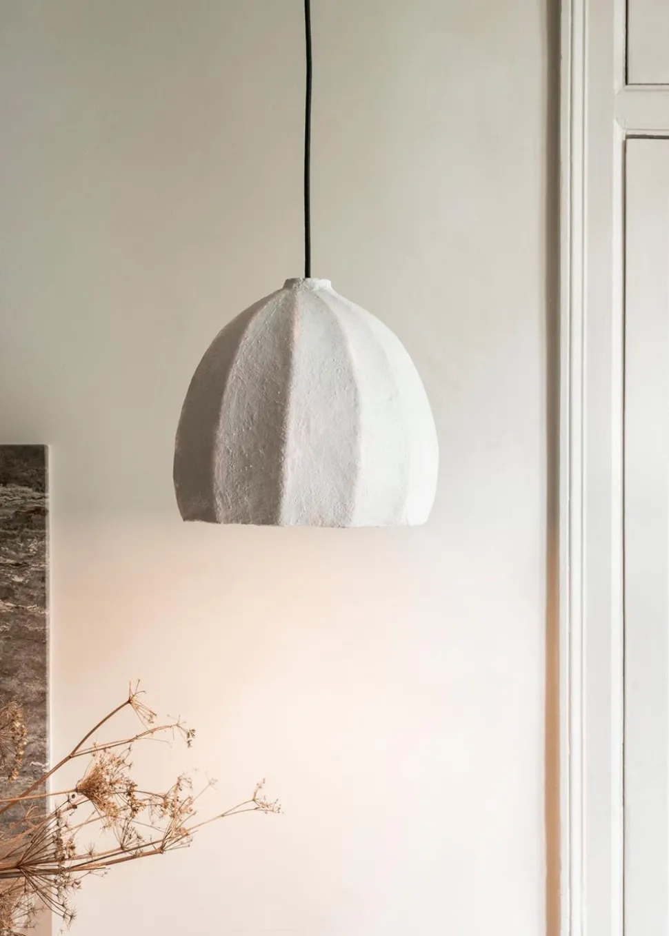 Die Tuva Pendelleuchte ist aus einem einzigartigen, recycelten Baumwollmaterial gefertigt, das dem ohnehin schon beeindruckenden Design eine besondere Textur und einen besonderen Glanz verleiht. Die weiße Farbe verleiht ihr ein zeitloses Element, das mit seiner schlichten Eleganz jeden Raum bereichert.
