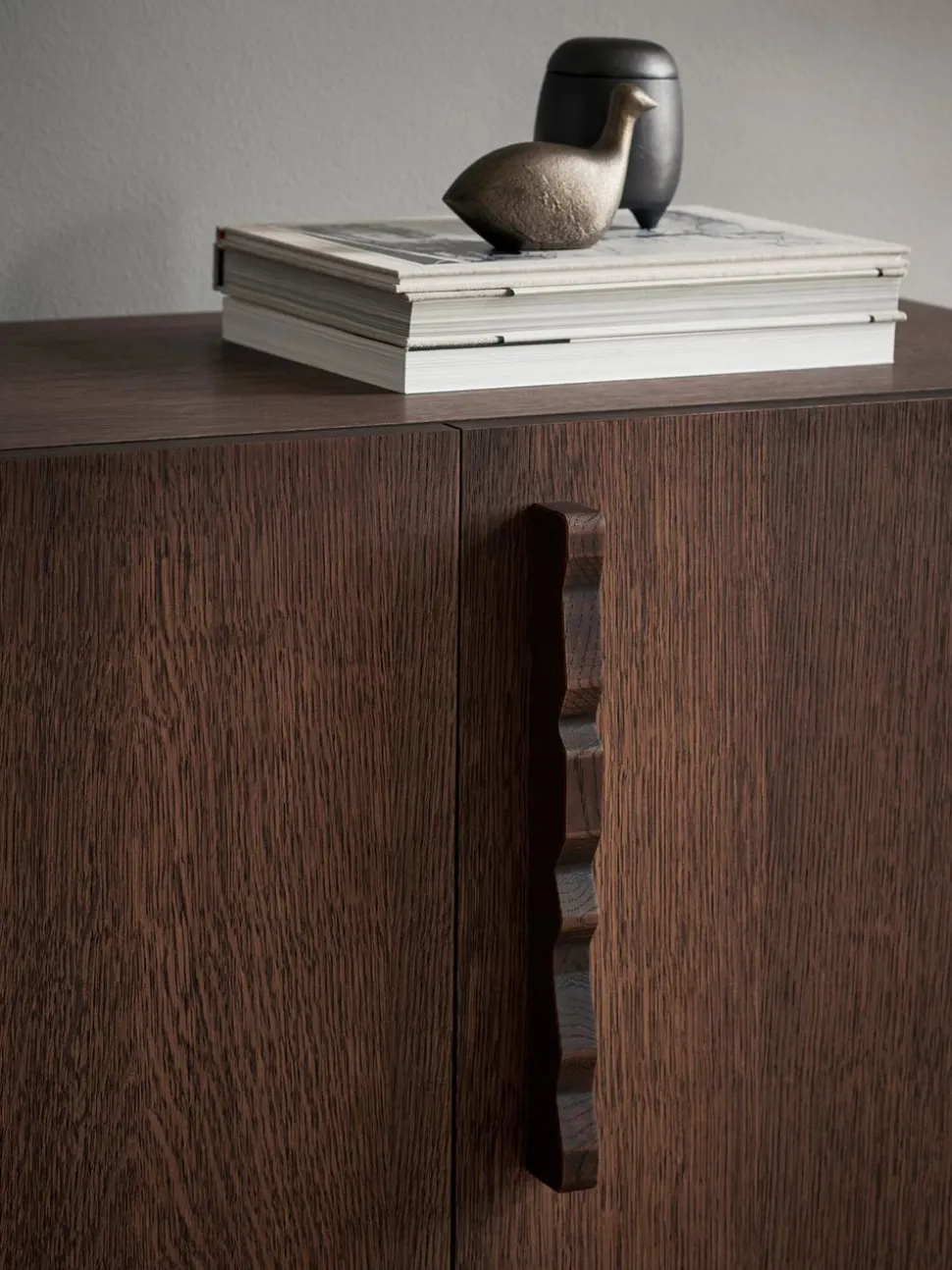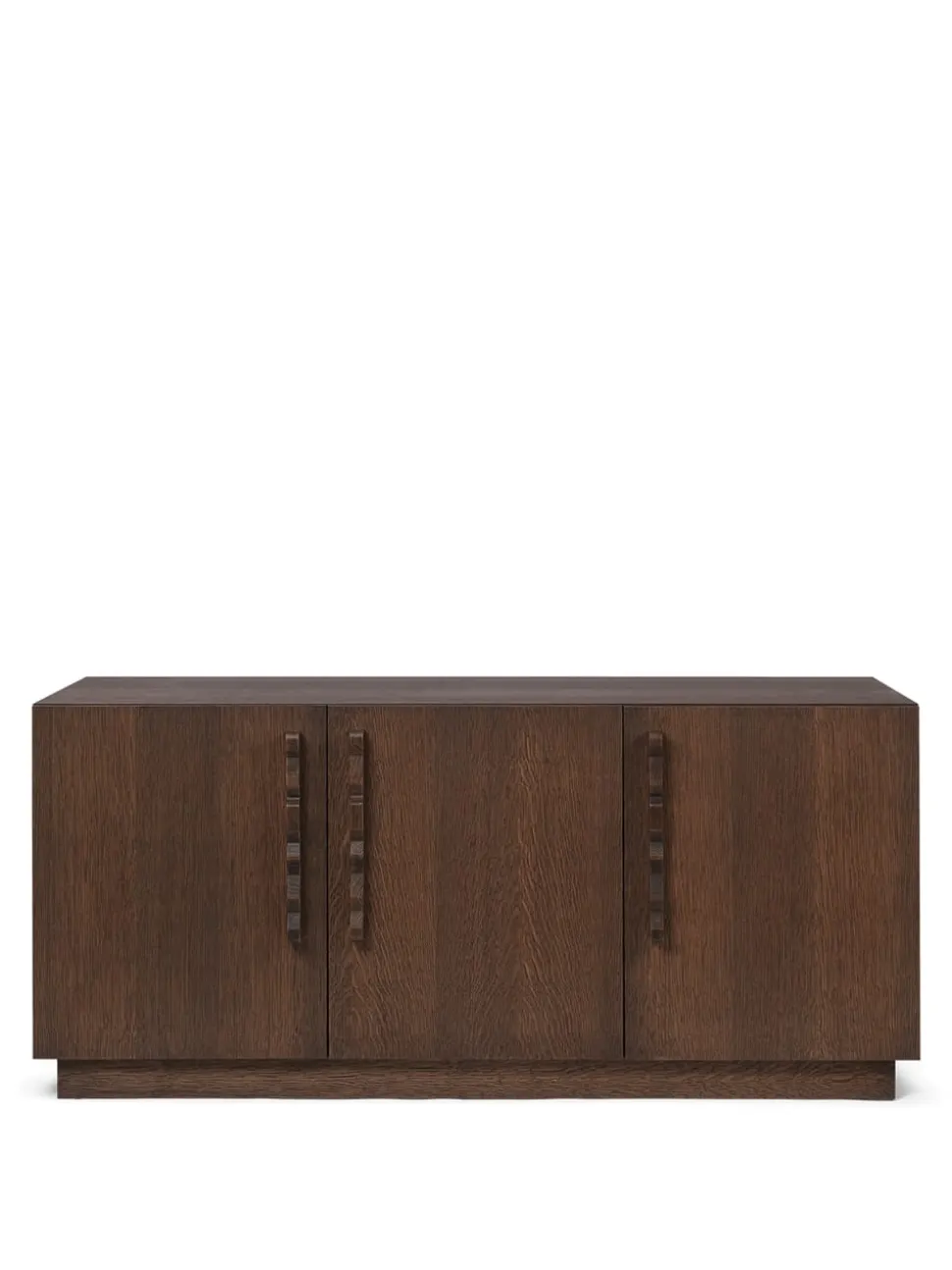 Die Anrichte Unda ist aus dunkel gebeizter FSC™-zertifizierter Eiche gefertigt und zeichnet sich durch eine robuste und klassische Ästhetik aus, die mit den verspielten geriffelten Griffen kontrastiert. Dieses Zusammenspiel von Zweckmäßigkeit und Launenhaftigkeit ergibt ein zeitloses Möbelstück, das sich jedem Raum anpasst. Das Innenregal des Unda Sideboards ist modular aufgebaut, so dass Sie die Höhe je nach Stauraumbedarf anpassen können.
