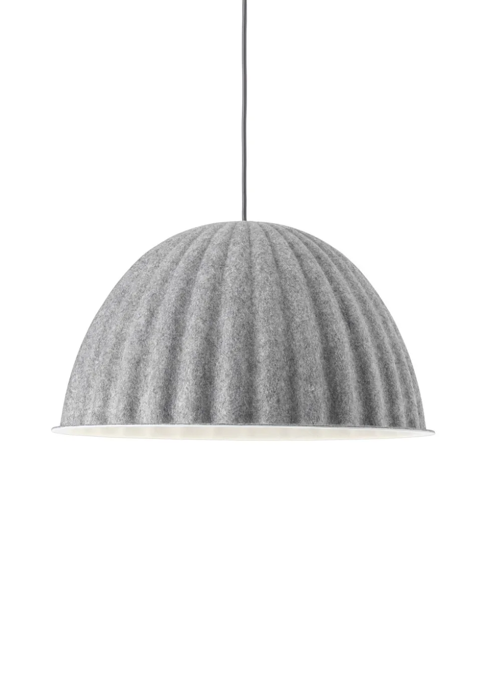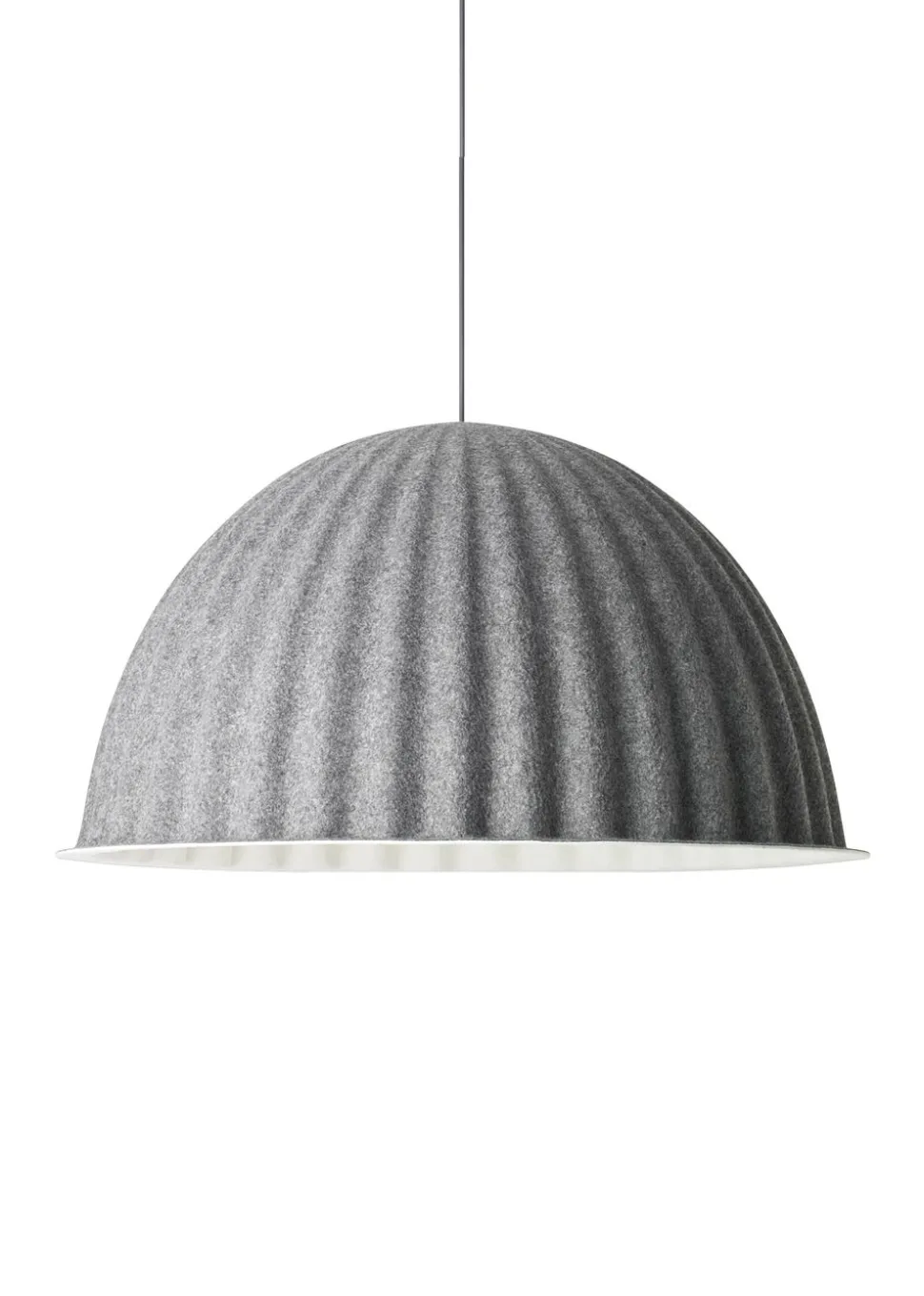 Die Under The Bell Pendelleuchte ist eine akustische Lösung und ein Blickfang in Ihrem Zuhause. Über einem Tisch oder in einem offenen Raum platziert, schafft die glockenförmige Leuchte eine eigene Sphäre, die die Menschen unter ihr sowohl physisch als auch abstrakt umhüllt und schützt. Durch ihr einzigartiges Design und die Wahl der Materialien verbessert die Lampe auch die Akustik in jedem Raum.