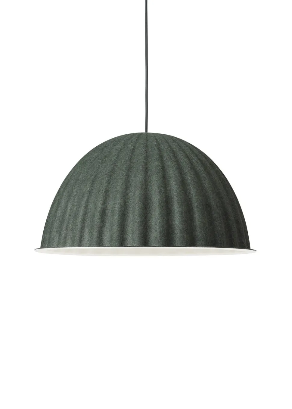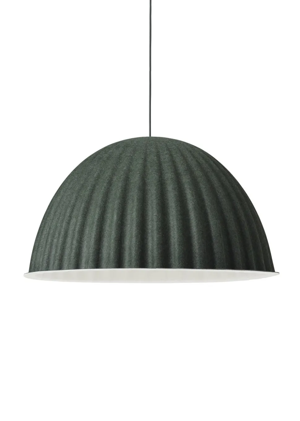 Die Under The Bell Pendelleuchte ist eine akustische Lösung und ein Blickfang in Ihrem Zuhause. Über einem Tisch oder in einem offenen Raum platziert, schafft die glockenförmige Leuchte eine eigene Sphäre, die die Menschen unter ihr sowohl physisch als auch abstrakt umhüllt und schützt. Durch ihr einzigartiges Design und die Wahl der Materialien verbessert die Lampe auch die Akustik in jedem Raum.