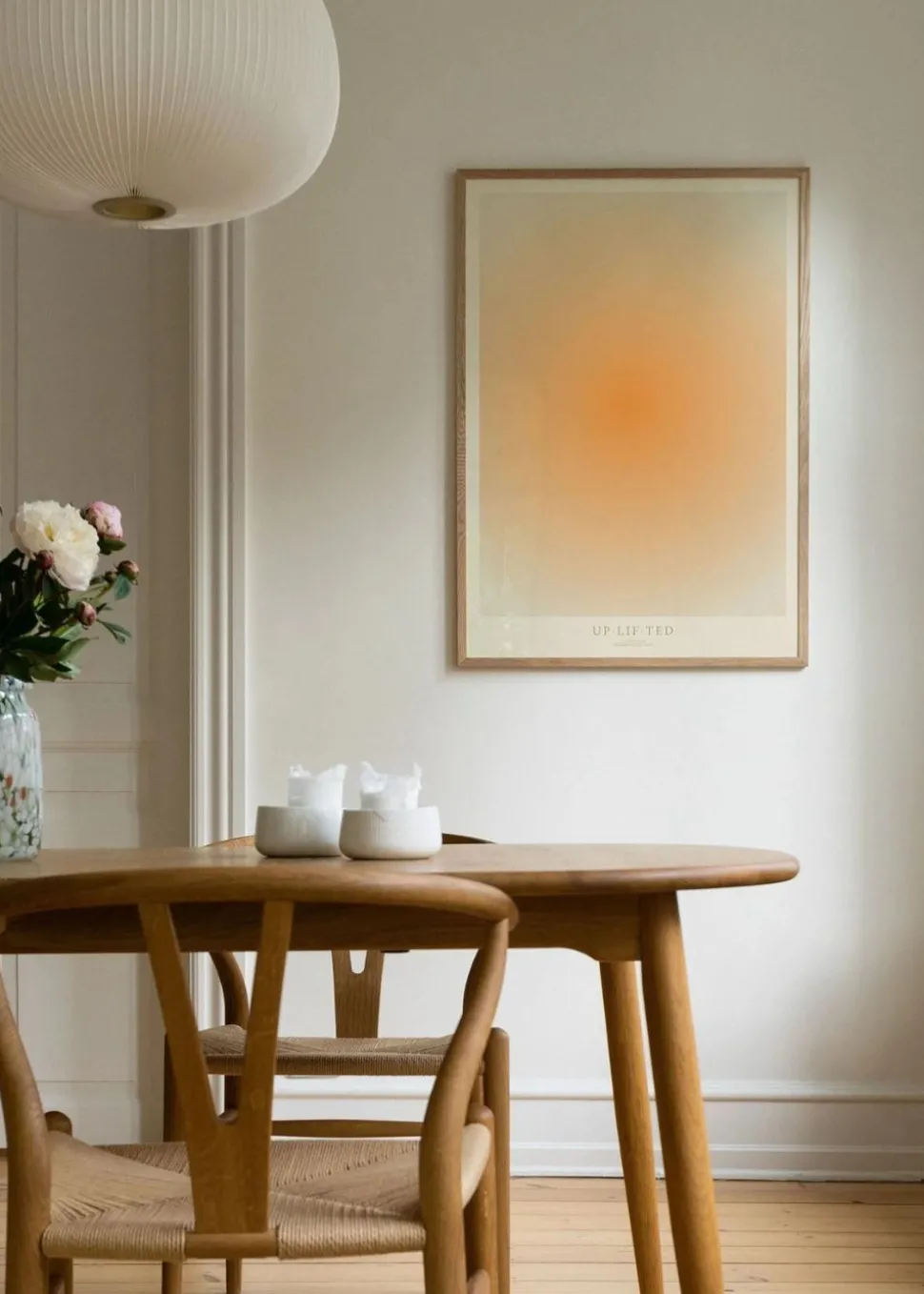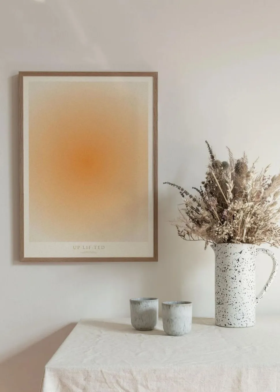 Uplifted wurde von der Künstlerin Mie & Him entworfen. Das Plakat ist ein grafisch illustriertes Design, das sich nicht auf ein Motiv konzentriert, sondern auf einen Eindruck und ein Gefühl. Die Farben zeichnen sich durch ihre emotionalen Zusammenhänge und dieses Orange aus, das sanft zum Rand hin abfällt.