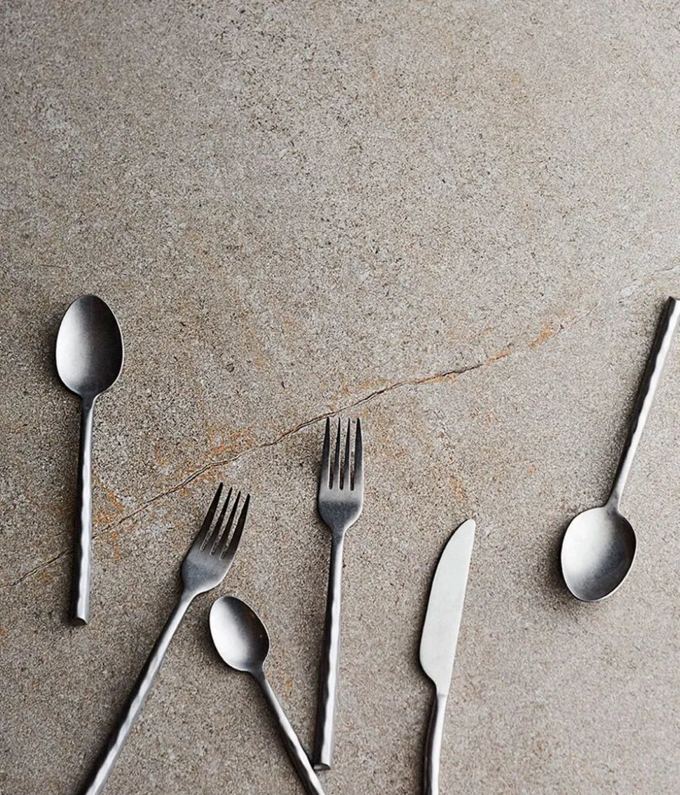 Das Besteck fügt sich wunderbar in eine minimalistische oder nordisch inspirierte Einrichtung ein. Es passt sowohl zu dunklen Holztischen als auch zu hellen, neutralen Textilien. Kombinieren Sie es mit rustikalen Keramikschalen oder modernen Gläsern, um ein einladendes und stilvolles Esserlebnis zu schaffen.