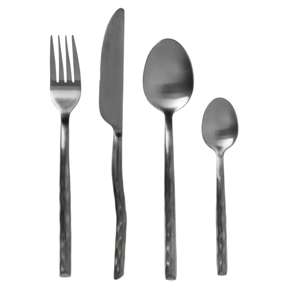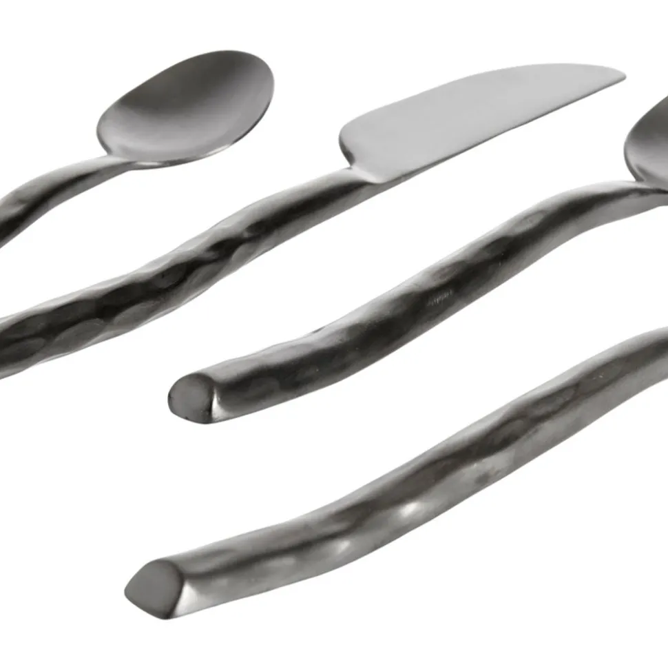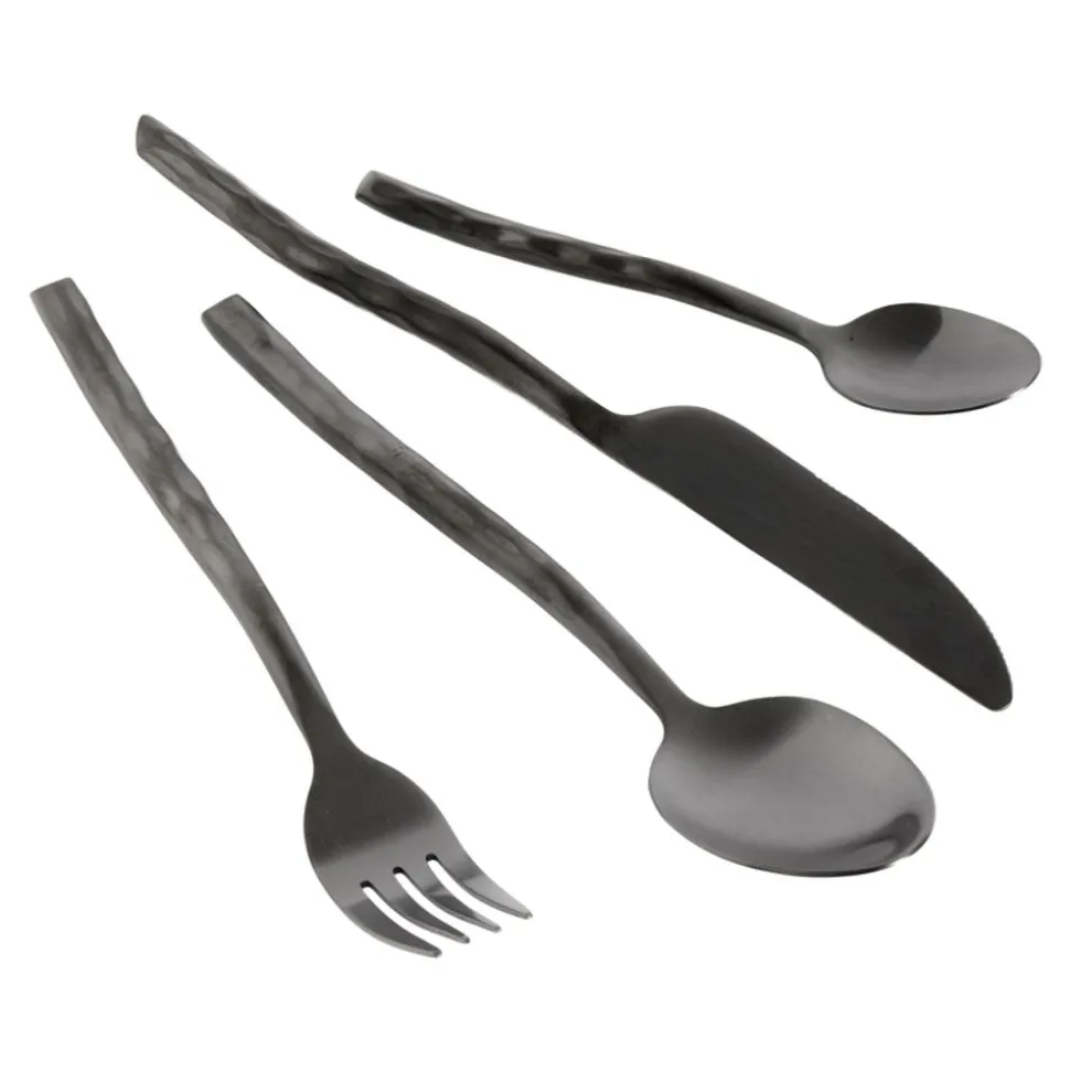 Das Uta-Besteck erhielt seinen Namen vom japanischen Utareta, was gehämmert oder geschlagen bedeutet. Die charakteristischen Hammerspuren auf dem wasserschwarzen Besteck in Kombination mit dem kalten Gefühl des Stahls schaffen eine haptische Oberfläche, die einen nicht mehr loslässt. Die rohen Bestecksets sind auch in einer satinierten Ausführung erhältlich. Um die schöne Oberfläche zu erhalten, wird Handwäsche empfohlen. Bei Bedarf mit Speiseöl behandeln. Jedes Besteckset besteht aus 16 Teilen, darunter 4 Gabeln, 4 Messer, 4 Teelöffel und 4 Esslöffel.