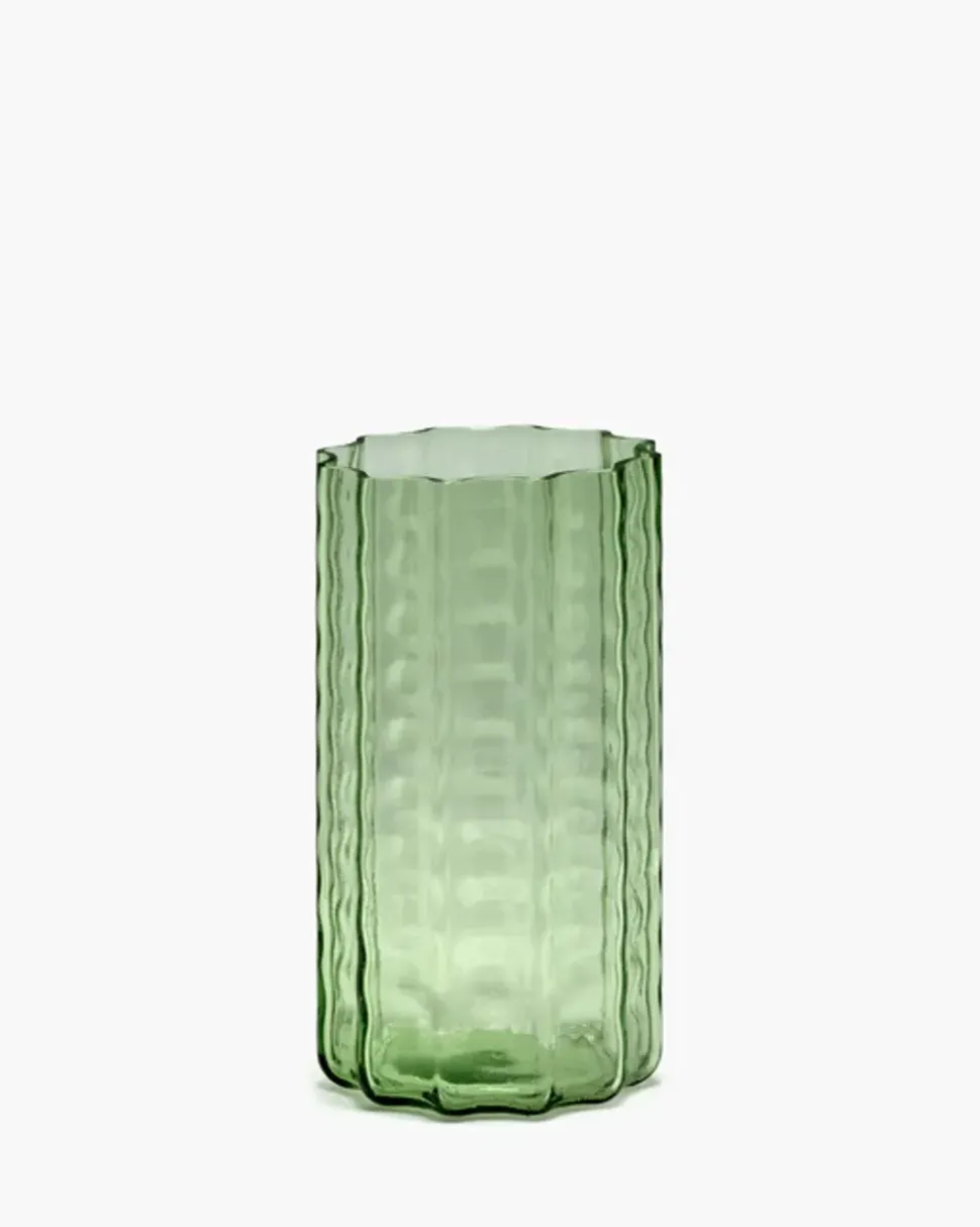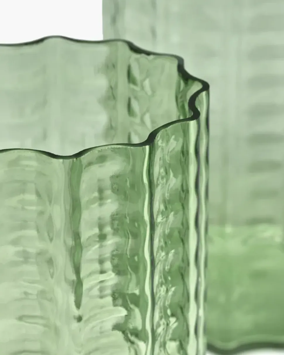 Die von Ruben Deriemaeker entworfene Vase Waves von ist eine Hommage an gutes Design, inspiriert von den monumentalen Fenstern des kultigen MAS-Museums in Antwerpen. Die Vase aus mundgeblasenem Glas zeichnet sich durch eine elegante Wellenform aus, die ein subtiles Spiel mit dem gedämpften Farbton erzeugt. Jedes Stück wird in sorgfältiger Handarbeit hergestellt, wodurch kleine, einzigartige Variationen entstehen, die die exklusive Qualität der Vase unterstreichen.