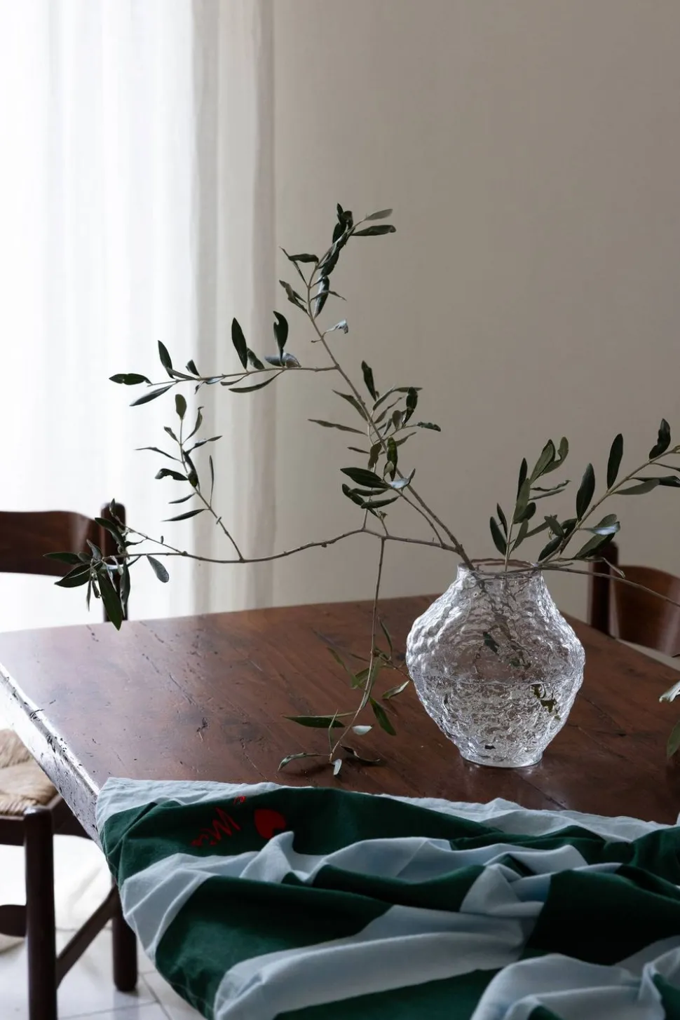Sie eignet sich sowohl als Solitär als auch für spielerische Kombinationen mit anderen Vasen. Stellen Sie sie auf die Fensterbank mit frischen Zweigen oder schmücken Sie den Esstisch mit ihr als dekorativem Mittelstück. Dank ihrer geringen Größe ist sie ideal für kleine Räume, Regale oder Nachttische, wo sie einen Hauch von Poesie und unerwarteter Textur verleiht.