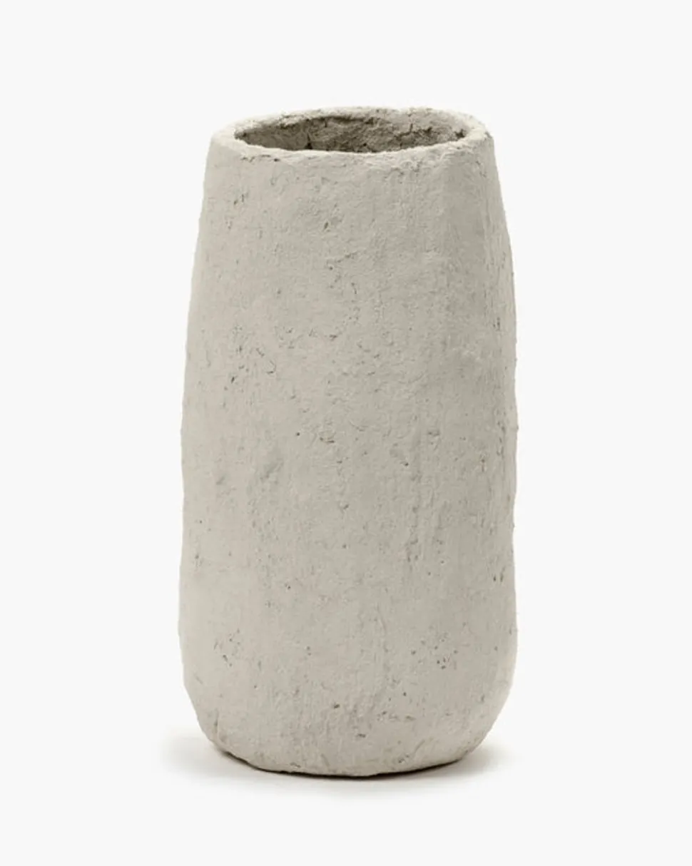 Die von Marie Michielssen entworfene Earth-Vase von ist eine einzigartige Pappmaché-Skulptur, die durch ihren voluminösen und strukturierten Ausdruck die Aufmerksamkeit auf sich zieht. Die raue Oberfläche hebt die natürlichen Unvollkommenheiten des Materials hervor und macht jede Vase zu einem authentischen und einzigartigen Kunstwerk. Ein Design, bei dem Schlichtheit und Struktur miteinander verschmelzen und jedem Raum eine organische Note verleihen.