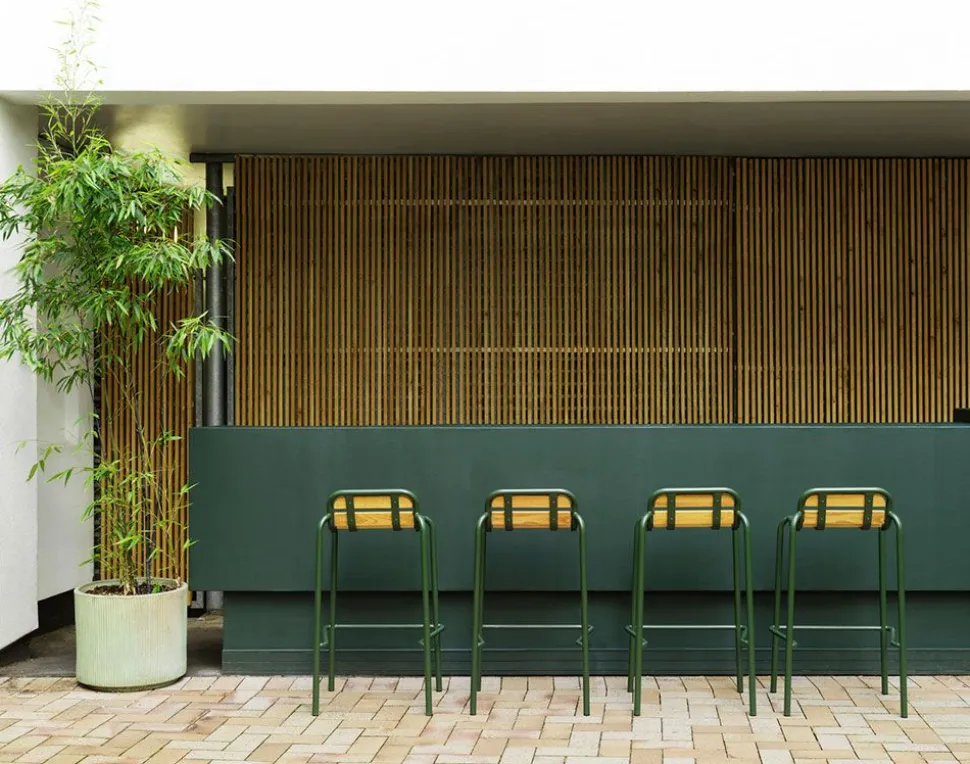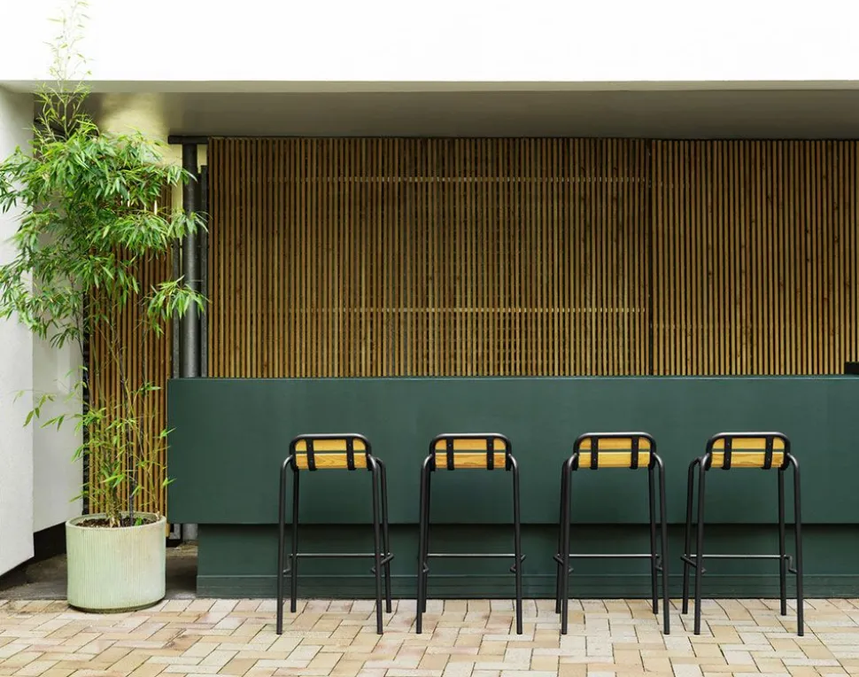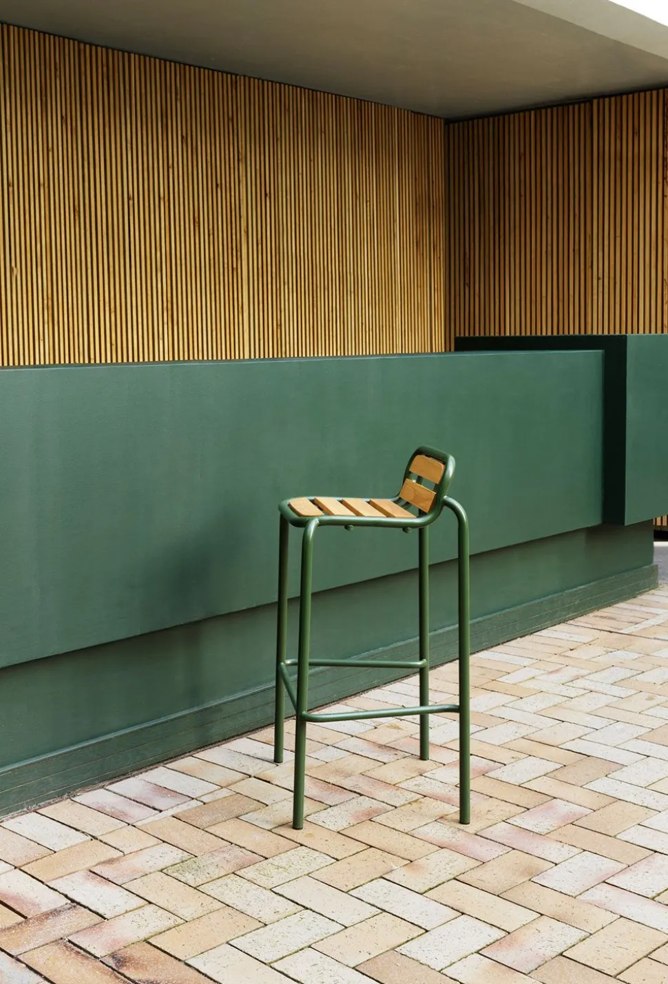 Der Vig Barstool Robinia von , entworfen von Simon Legald im Jahr 2023, steht für die Verschmelzung von Funktion und Ästhetik bei Outdoor-Möbeln. Mit seinem Gestell aus doppelt pulverbeschichtetem Stahl und geöltem Robinienholz verbindet dieser Barhocker Haltbarkeit mit natürlicher Eleganz. Seine robuste Konstruktion garantiert Langlebigkeit auch unter anspruchsvollen Außenbedingungen, während das witterungsbeständige Robinienholz einen warmen, organischen Touch verleiht. Das zeitlose Design und die subtile Integration der Materialien machen ihn ideal für jeden Außenbereich, von der modernen Terrasse bis zum klassischen Garten.