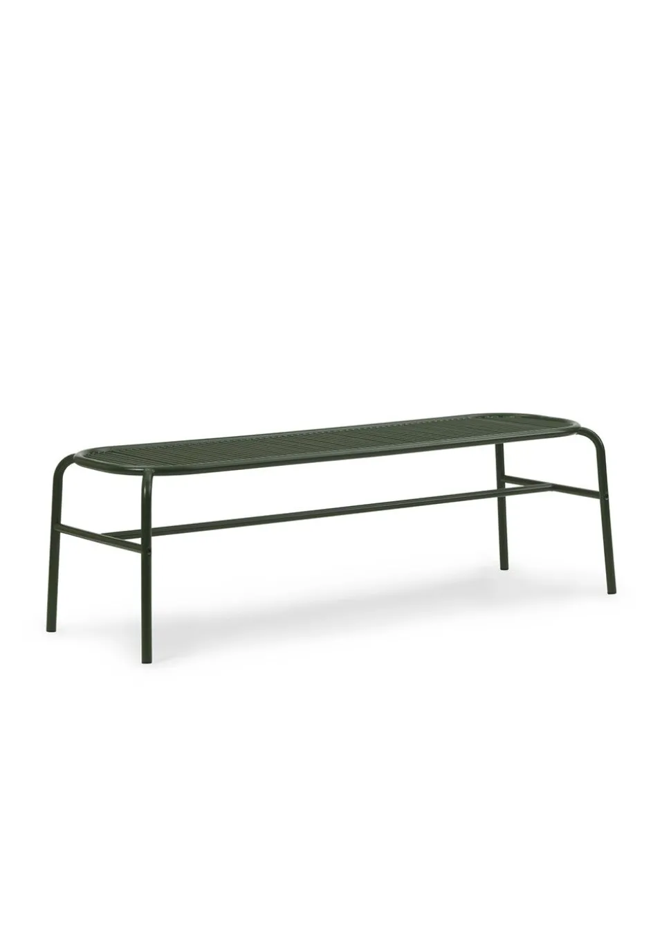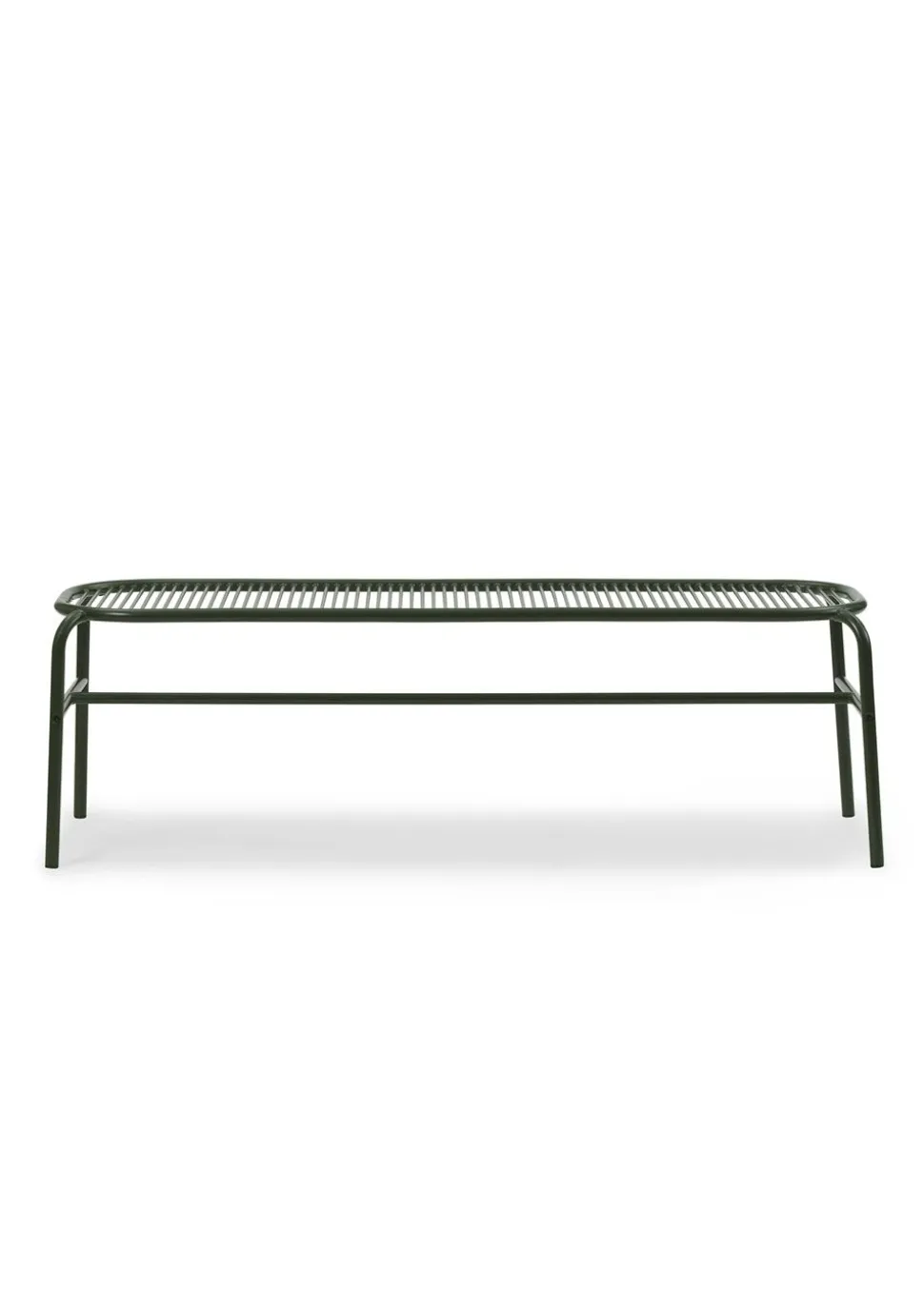 DieVig Bench von , entworfen von Simon Legald, ist ein echter Vertreter der skandinavischen Designtradition. Mit einer doppelten pulverbeschichteten Stahlstruktur ist die Bank eine Verschmelzung von Robustheit und eleganten Linien, die Langlebigkeit und minimale Wartung verspricht. Diese Outdoor-Bank ist Teil einer Kollektion, die Vielfalt und Funktionalität zelebriert und ein breites Spektrum an Möglichkeiten zur Gestaltung von Außenbereichen mit Flair bietet. Jedes Detail wurde durchdacht, um ein harmonisches und widerstandsfähiges Möbelstück zu schaffen, das den verschiedenen Elementen der Natur widersteht.