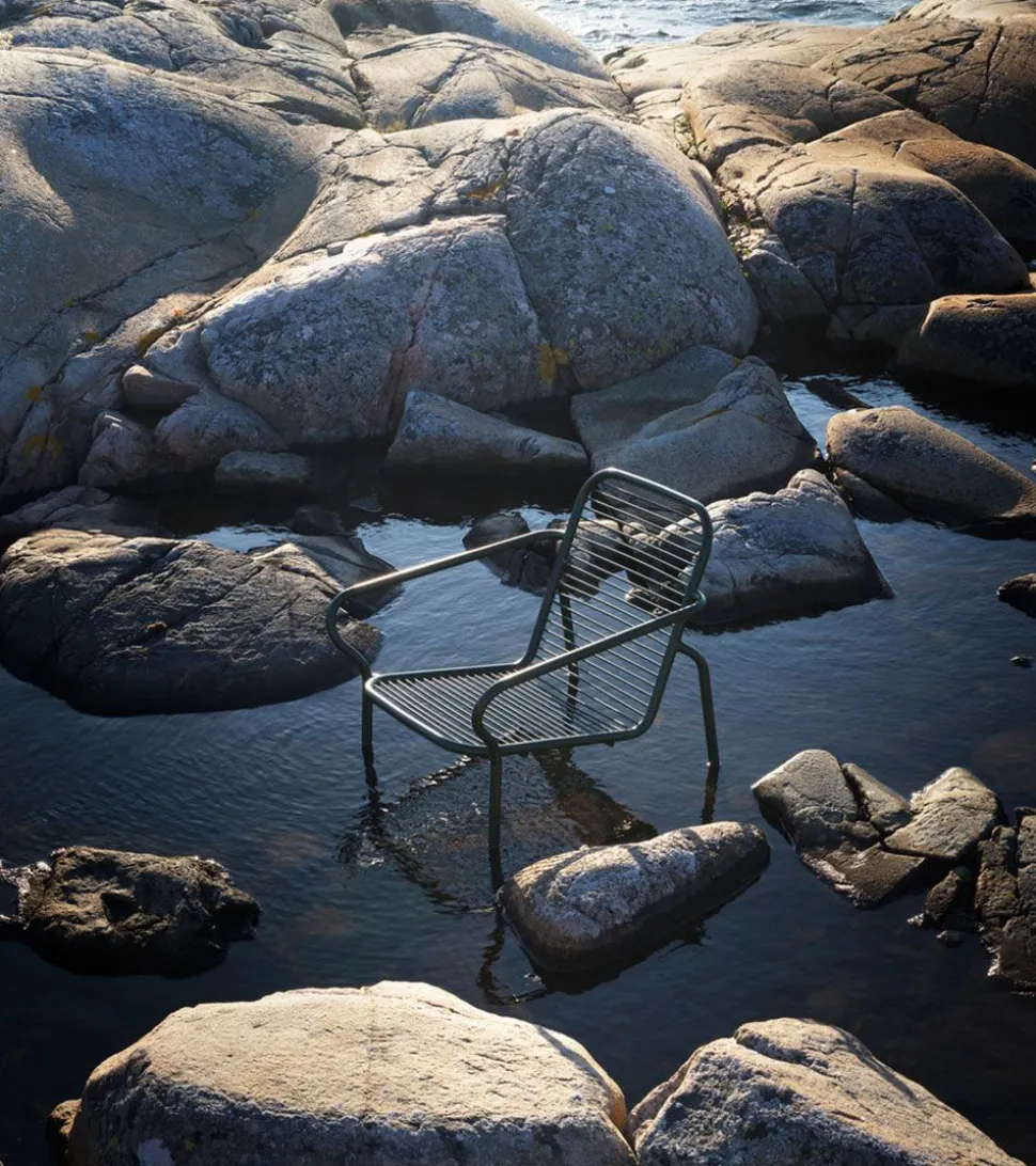 Der Vig Lounge Chair von , entworfen von Simon Legald im Jahr 2023, ist eine Hommage an das skandinavische Design-Mantra: Funktionalität trifft auf die Ästhetik der Form. Dieser Outdoor-Stuhl mit seinem doppelten pulverbeschichteten Stahlrahmen ist ein Beweis für die Qualität der Handwerkskunst und die Langlebigkeit des Designs. Die schlanken Linien und der industrielle Look verleihen dem Vig Lounge Chair eine raffinierte Eleganz, die zu jedem Außenbereich passt, von üppigen Gärten bis zu minimalistischen Terrassen. Robust genug, um den Elementen zu trotzen, aber mit einem leichten und einladenden Design, das zum Entspannen und geselligen Beisammensein einlädt.
