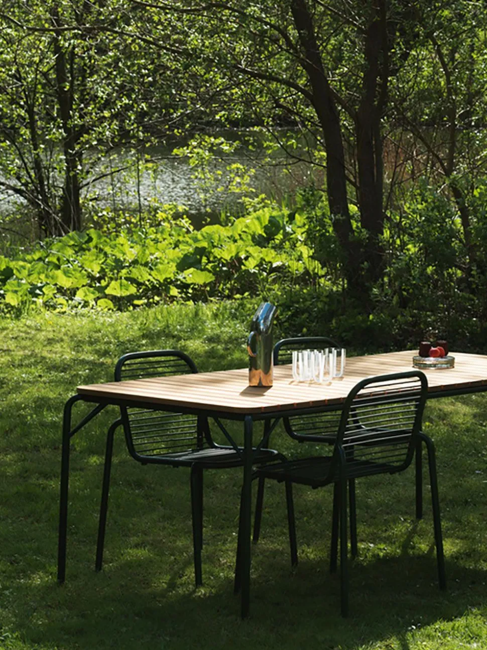 Der von Simon Legald im Jahr 2023 entworfene Vig Table Robinia von ist eine Verkörperung der skandinavischen Designphilosophie, bei der Funktionalität auf Ästhetik trifft. Dieser Gartentisch, Teil der vielseitigen Vig-Kollektion, besteht aus einem Gestell aus doppelt pulverbeschichtetem Stahl und ist mit Holzlatten aus geölter Robinie verziert, die für ihre außergewöhnliche Festigkeit und Wetterbeständigkeit bekannt ist. Sein Design ist einfach und doch raffiniert und spiegelt ein tiefes Verständnis für das Zusammenspiel der Materialien wider. Der Tisch ist nicht nur ein Möbelstück, sondern ein Stück Handwerkskunst, das die Zeit überdauert und einen Rahmen für unvergessliche Momente im Freien schafft. Mit seiner robusten Konstruktion und seinem minimalistischen Charme ist Vig Table Robinia ein wahres Zeugnis skandinavischer Designästhetik und bietet eine perfekte Balance zwischen Schönheit und Funktionalität.