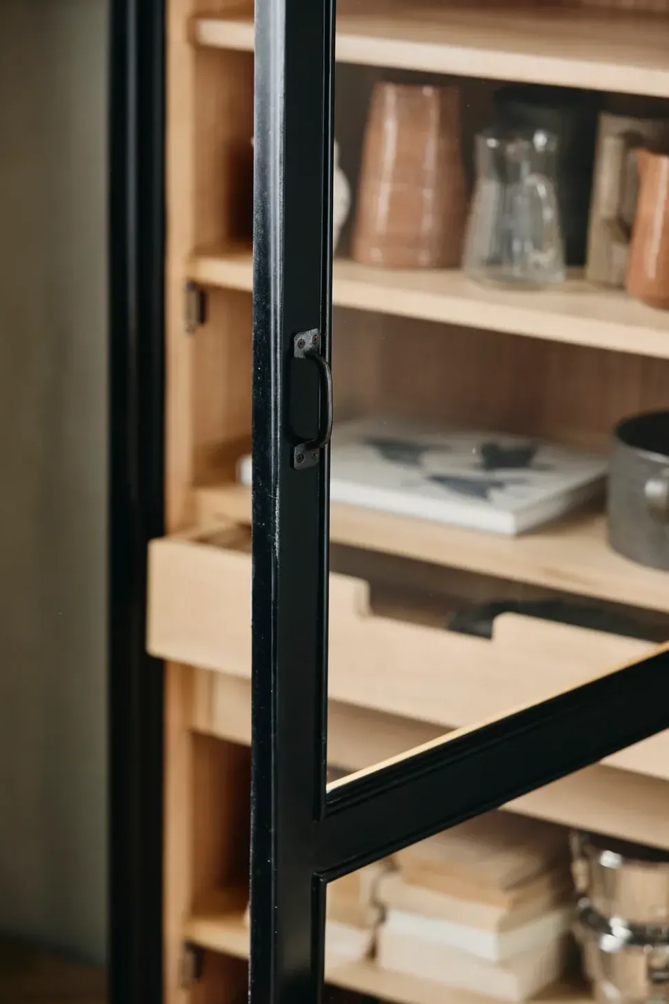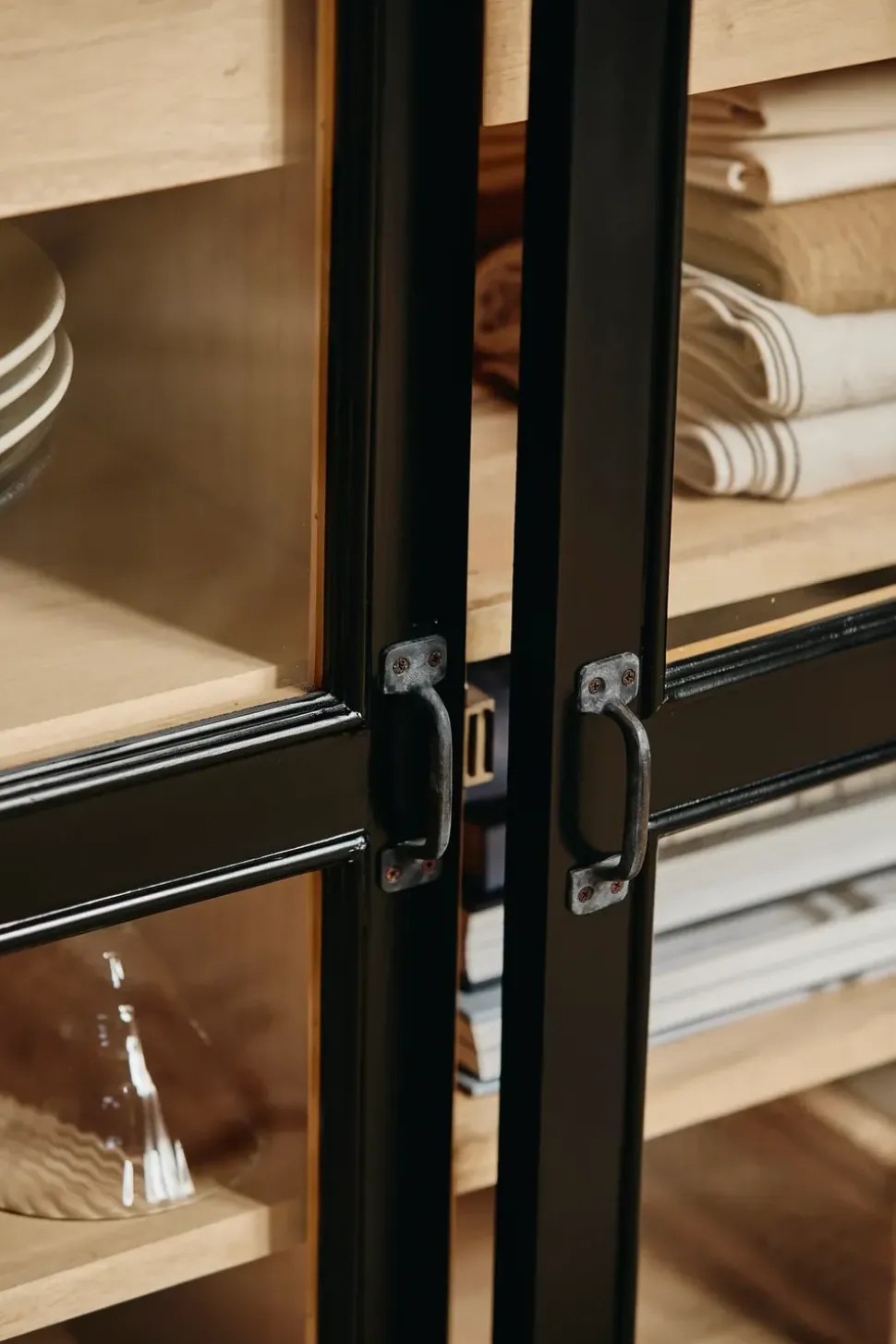 Perfekt für Wohnzimmer, Küche oder Büro, verleiht er dem Raum Tiefe und Charakter. Stellen Sie es vor eine helle Wand für einen auffälligen Look oder kombinieren Sie es mit natürlichen Materialien für eine ausgewogene Ästhetik. Ein zeitloses Möbelstück, das sowohl aufbewahrt als auch stilvoll präsentiert.