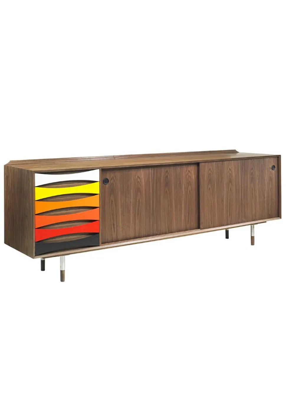 Schubladen können ohne Mehrkosten aus Holz wie der Rest des Korpus gefertigt oder in einer roten oder blauen Farbskala lackiert werden. Wenn Sie diesen Artikel bestellen, werden Sie von unserem Webshop-Team kontaktiert, um mehr Details über die Wahl der Schubladen für dieses Möbelstück zu erfahren.