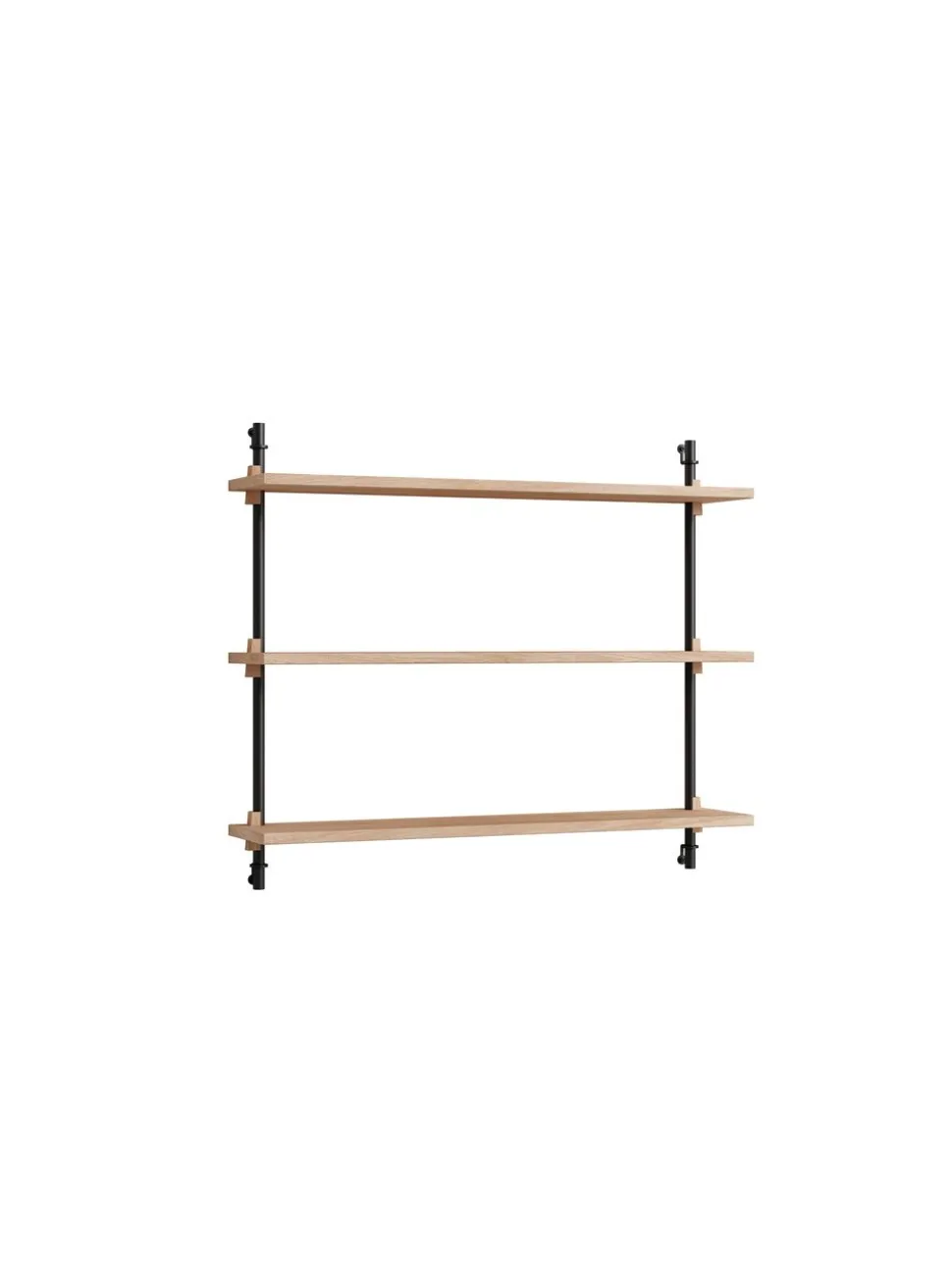Das Wandregal wird von Moebe hergestellt. Das Wandregal ist aus Eiche gefertigt. Das Regal ist für schmale Flure, geräumige Wohnräume und kleine Küchenecken konzipiert. Das Wandregal kann auf jede Höhe eingestellt werden. Das Bücherregal ist in vier Varianten erhältlich.