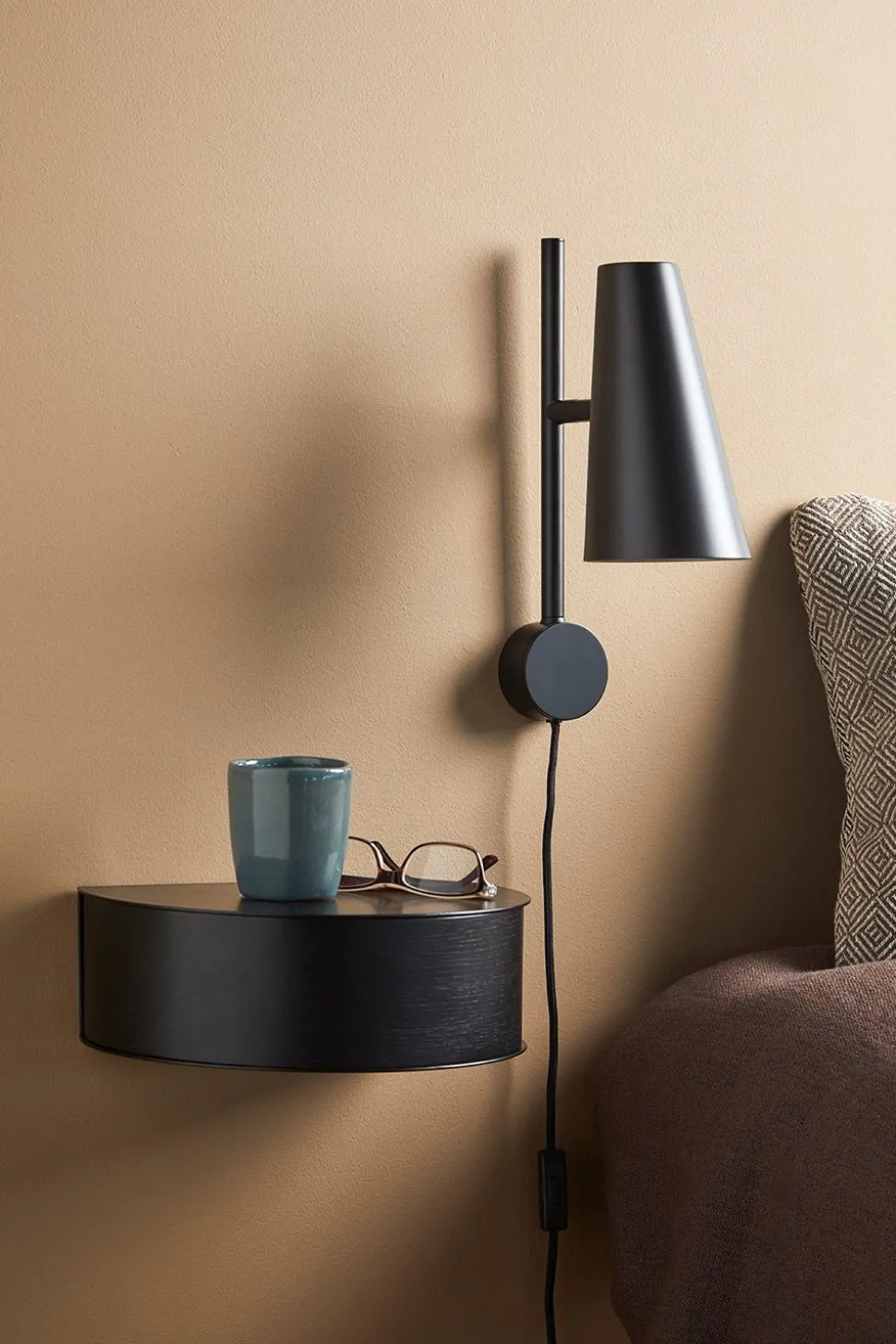Wallie Shelf ist eine runde Wandschublade mit Metallbeschlägen, die sich gut in jeden Raum einfügt; als Nachttisch oder für Schlüssel. Das Wallie-Regal wurde von Amalie Skov Rahbæk entworfen.