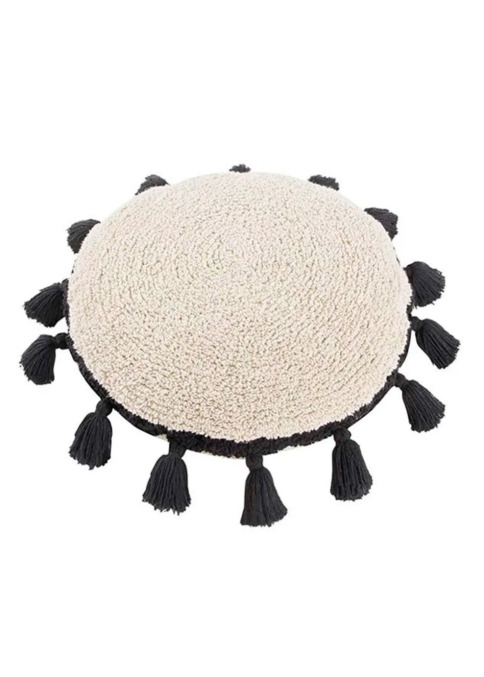 Das waschbare Kissen Circle von ist ein schönes rundes Kissen mit einem schlichten Design, das zu jeder Einrichtung passt. Die kleinen Fransen an den Seiten verleihen dem Kissen eine zusätzliche Dimension und machen es noch gemütlicher und einladender. Das Kissen ist aus Baumwolle und kann einfach in der Maschine gewaschen werden, so dass es immer frisch und neu aussieht.
